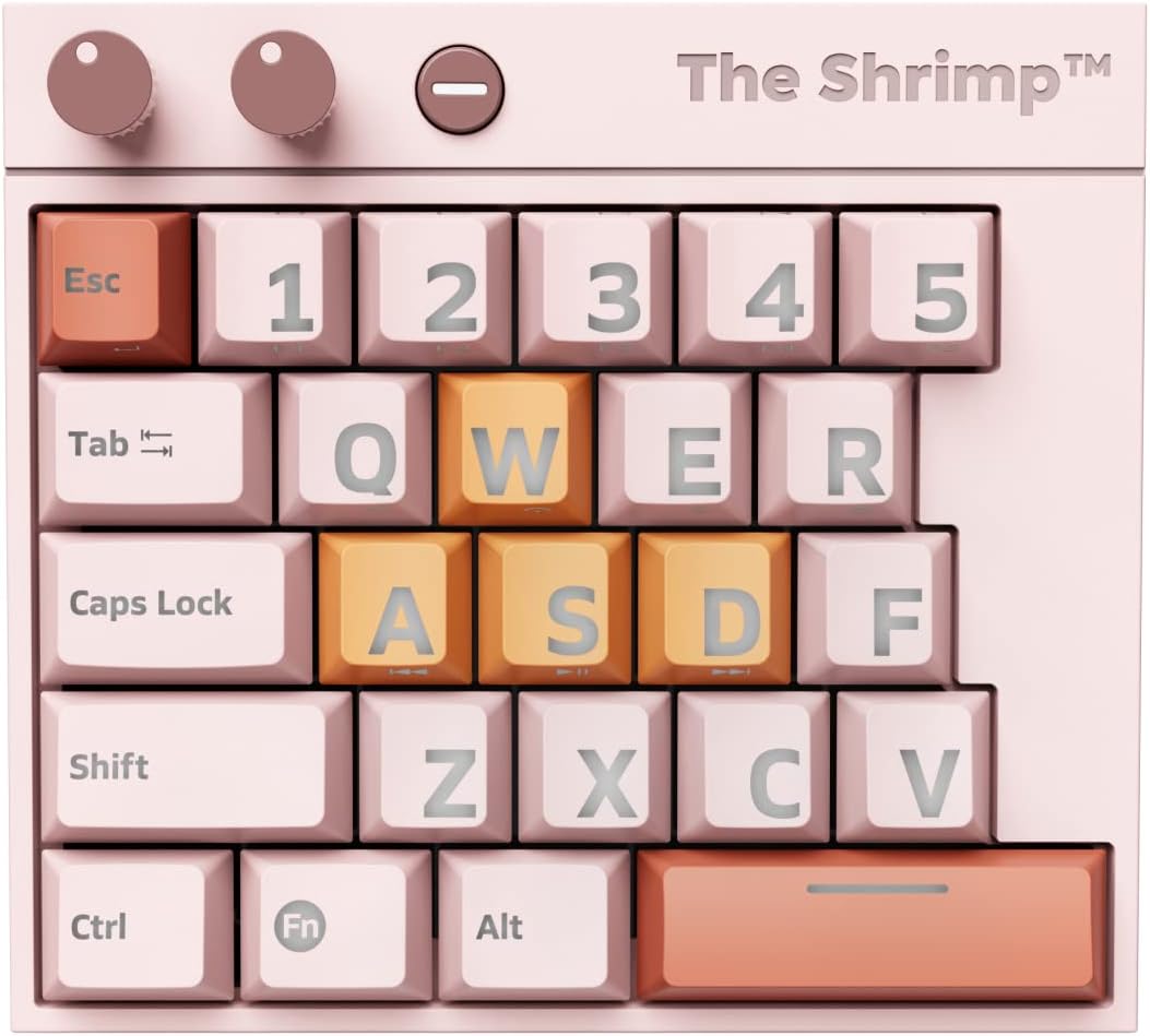 The The Shrimp Gaming Keyboard (369651) by PINKEY is a compact one-handed gaming keypad engineered for fast inputs, precision, and ergonomic comfort. Designed for FPS, battle royale, MOBA, and competitive gaming, it keeps your essential movement and action keys within immediate reach. Its ultra-small footprint leaves plenty of mouse space, making it ideal for low-sensitivity players and clean desk setups.