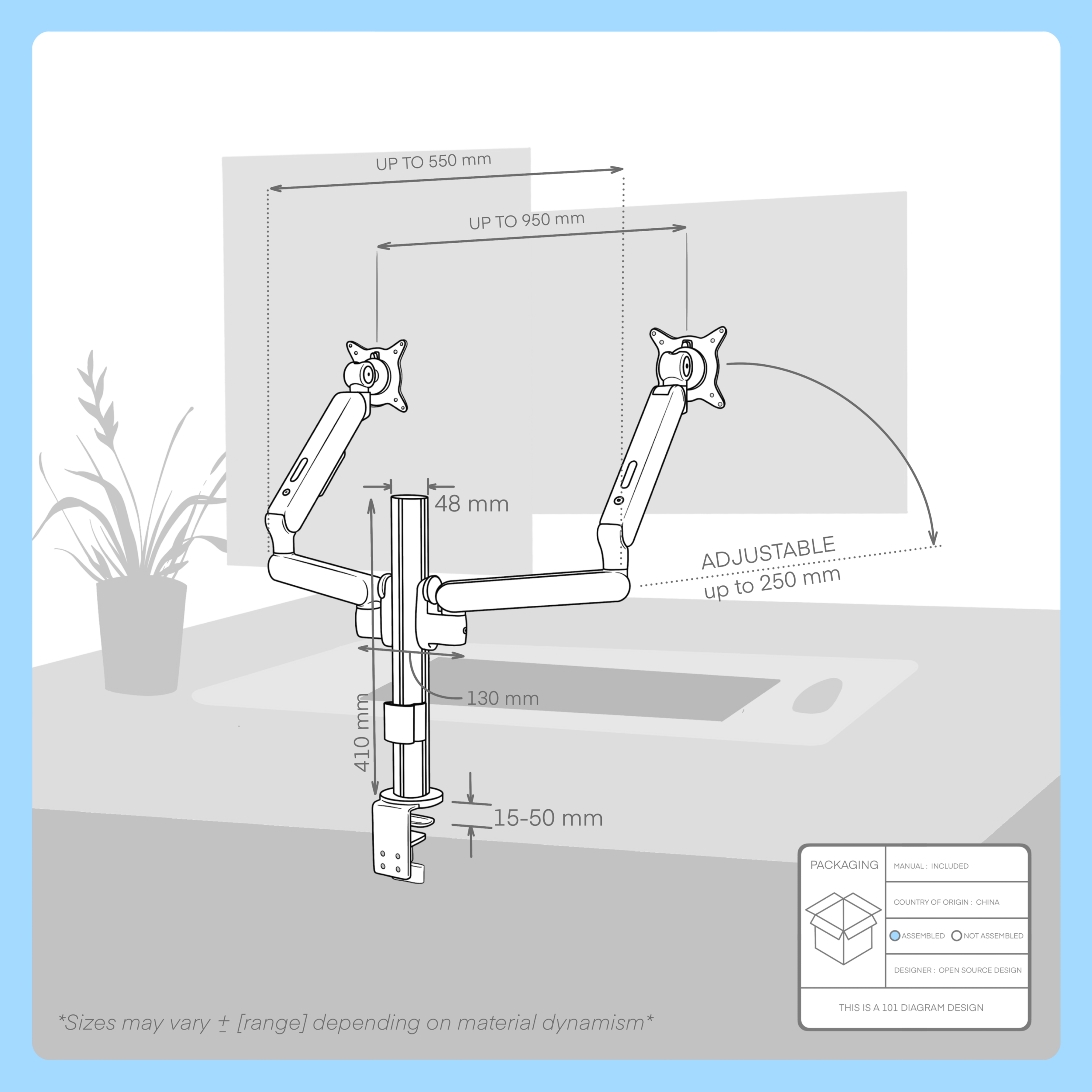 | Maximum Arm Extension | Approx. 450 – 500 mm |