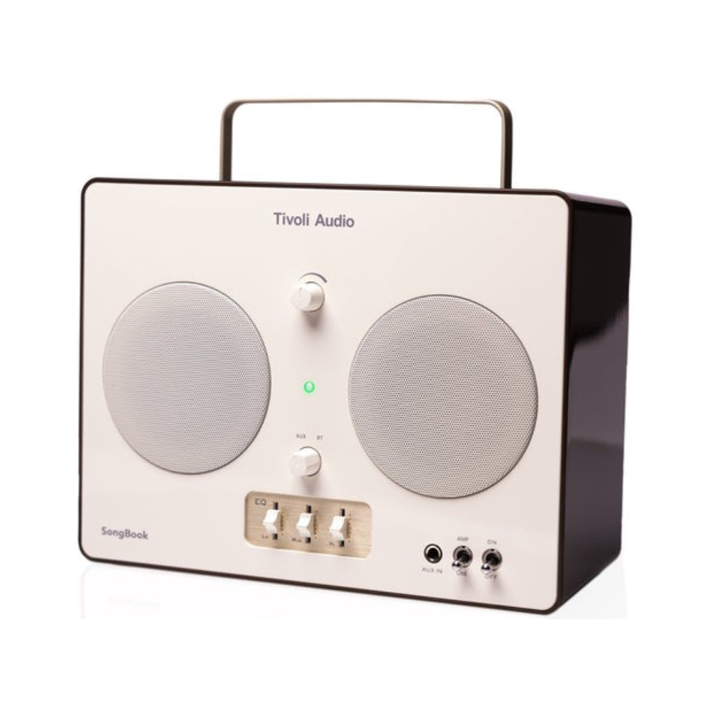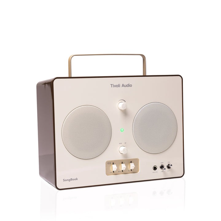 The Tivoli SongBook Portable Bluetooth Speaker with Built‑In Preamp (Cream/Brown) merges vintage-inspired design with modern audio versatility. It serves not only as a wireless Bluetooth speaker, but thanks to its integrated preamp, it can also function as a small amplifier — ideal for musical instruments, microphones, turntables without a phono preamp, or other high‑impedance sources.