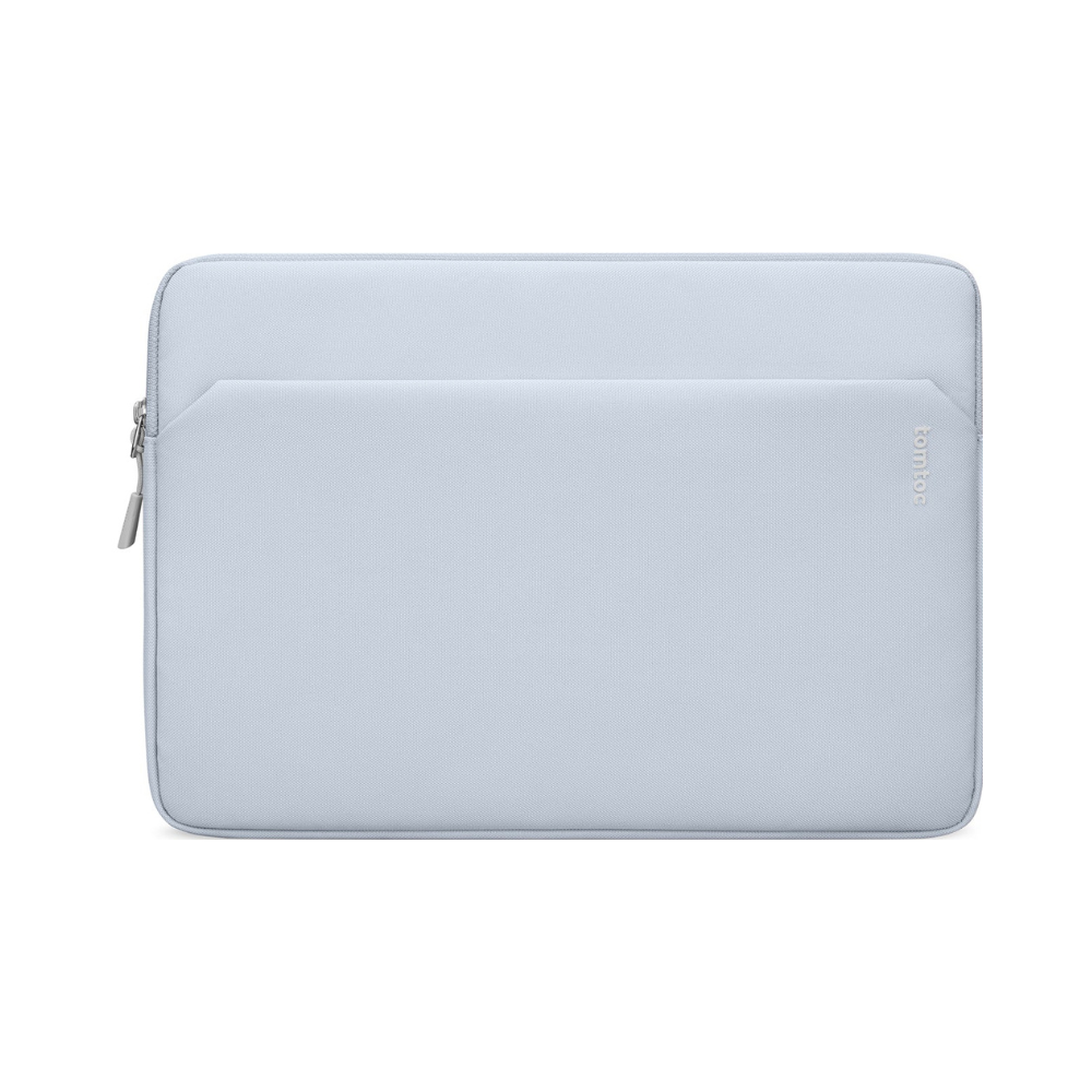 The tomtoc Light-A18 Laptop Sleeve – Mist Blue (14″ MacBook) is a slim and lightweight protective sleeve designed for everyday commuting and travel. Crafted from eco-friendly recycled fabric, it features soft internal fleece padding that provides reliable protection against scratches, minor bumps, and daily wear. The water-resistant exterior helps guard your device from spills and light rain, while the high-quality zipper ensures smooth and secure access. Its minimalist profile allows the sleeve to be carried on its own or slipped easily into a backpack or briefcase.