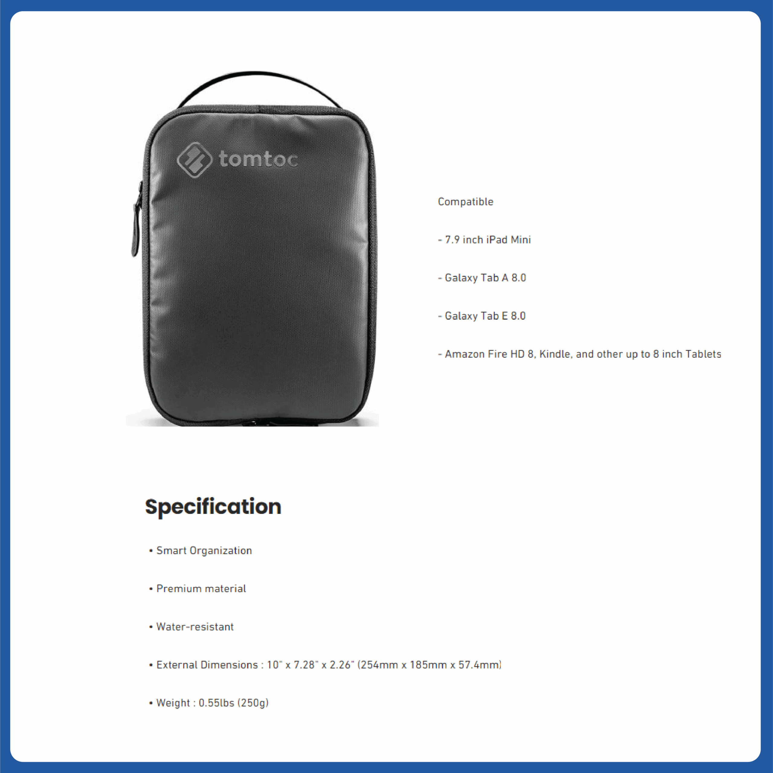 The tomtoc Explorer‑T11 Accessories Pouch (8.3″, Black) is a compact and structured pouch designed to neatly organise your tech accessories. Perfect for carrying cables, chargers, SSDs, memory cards, or even a small tablet, this pouch combines style, practicality, and premium construction in a minimal form factor.