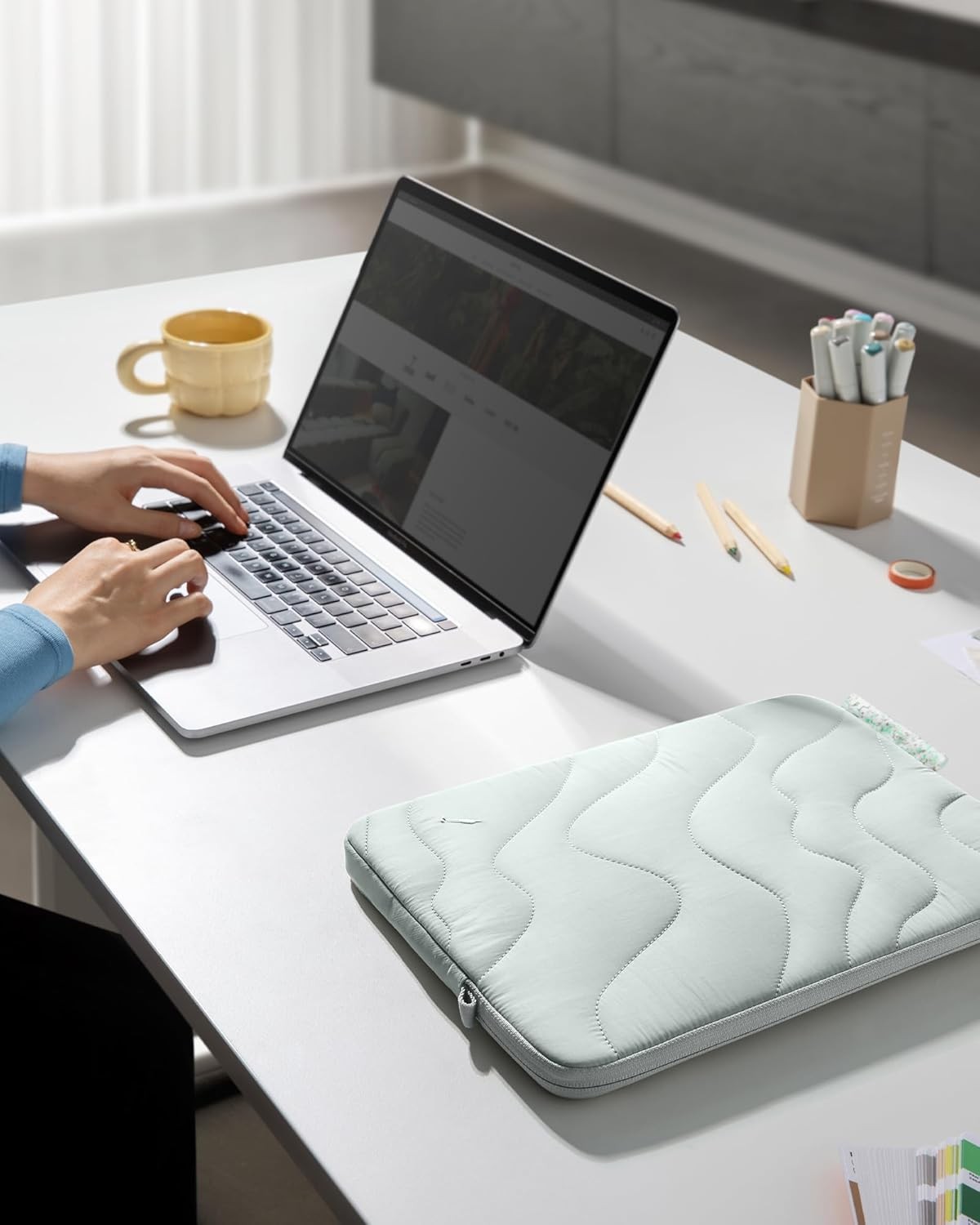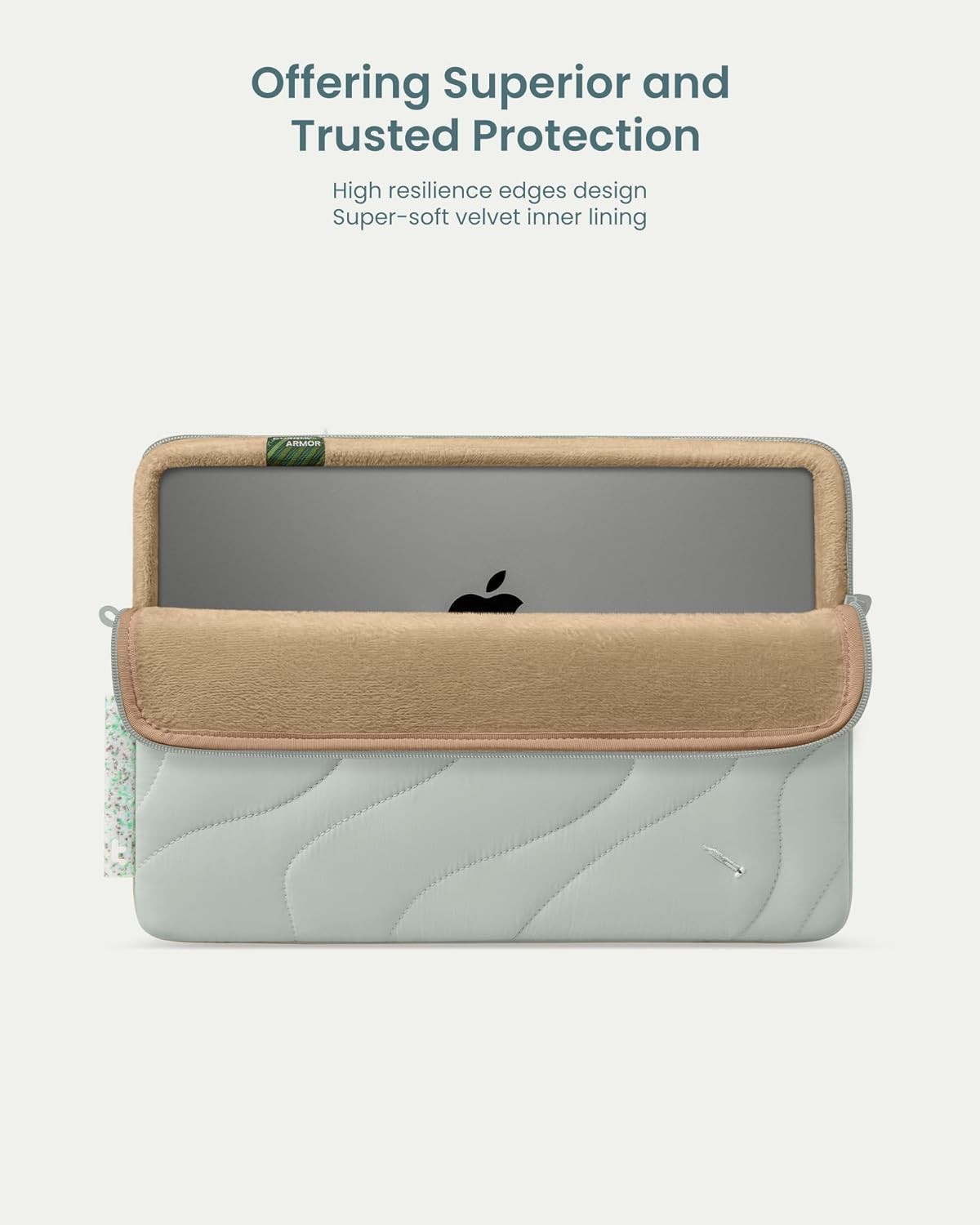 The tomtoc Terra‑A27 Laptop Sleeve (13″, Lakeshore) brings together protective cushioning and eco‑conscious materials in a sleek, modern package. Designed for 13‑inch laptops and tablets, it features the brand’s CornerArmor™ technology to safeguard devices from drops and shocks, while the plush velvet inner lining keeps the exterior safe from scratches.