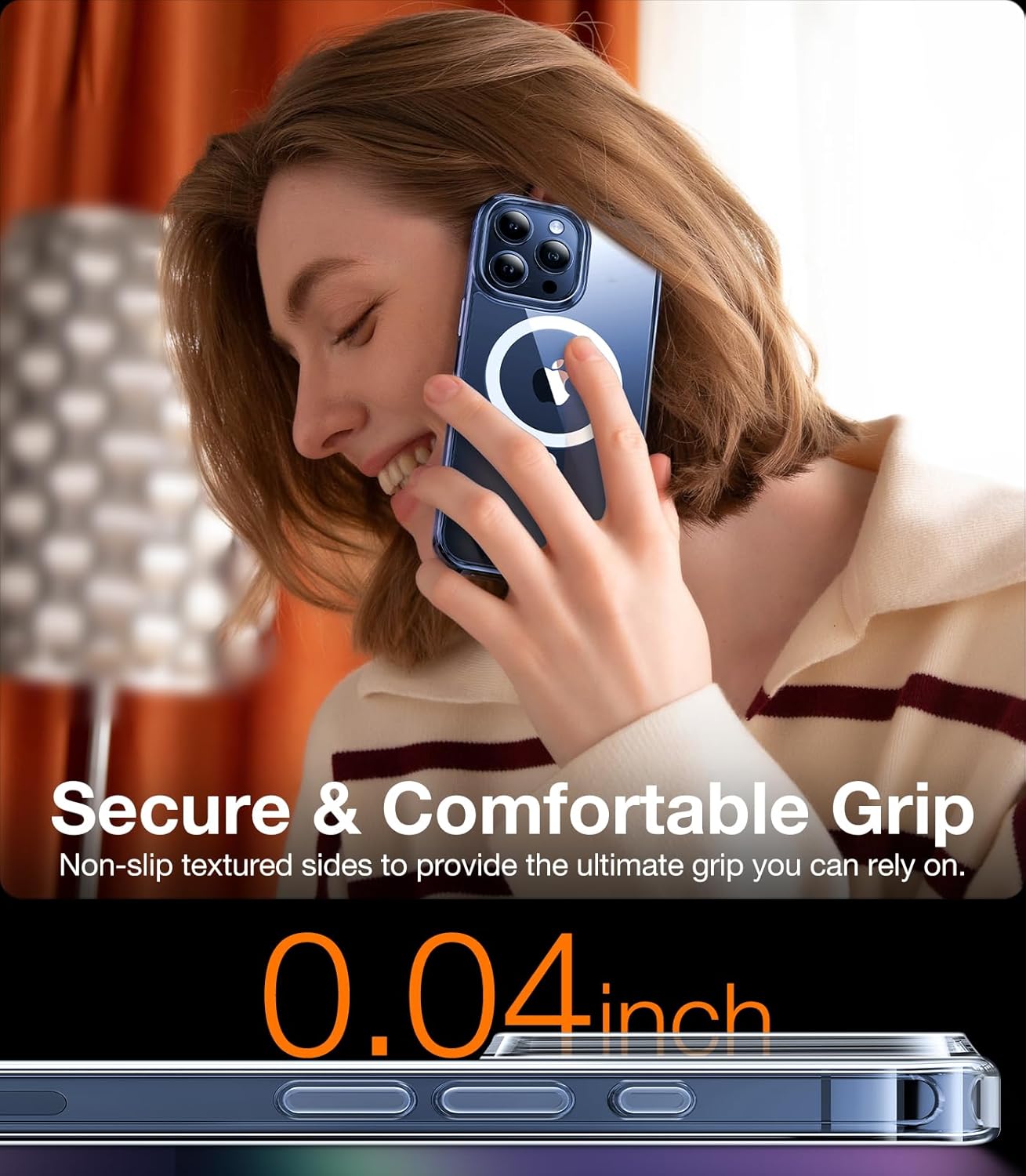 Crafted from premium PMMA organic glass, the Diamond-Mag Case offers exceptional transparency that resists yellowing over time. A nano oleophobic coating protects against fingerprints, sweat, UV exposure, and stains, ensuring your iPhone stays clean and clear like new. Its slim, lightweight profile preserves the original feel of your device while enhancing grip with anti-slip textured sides and a silky matte finish.