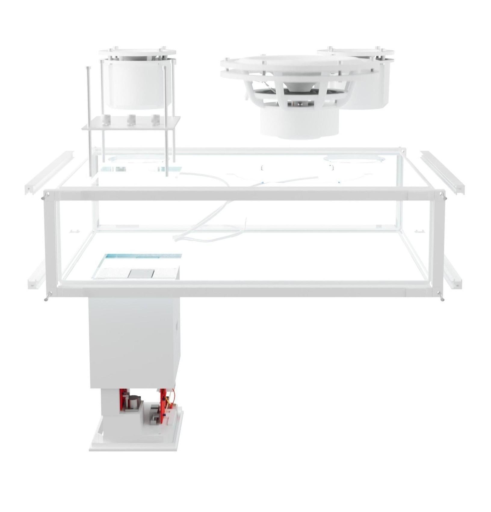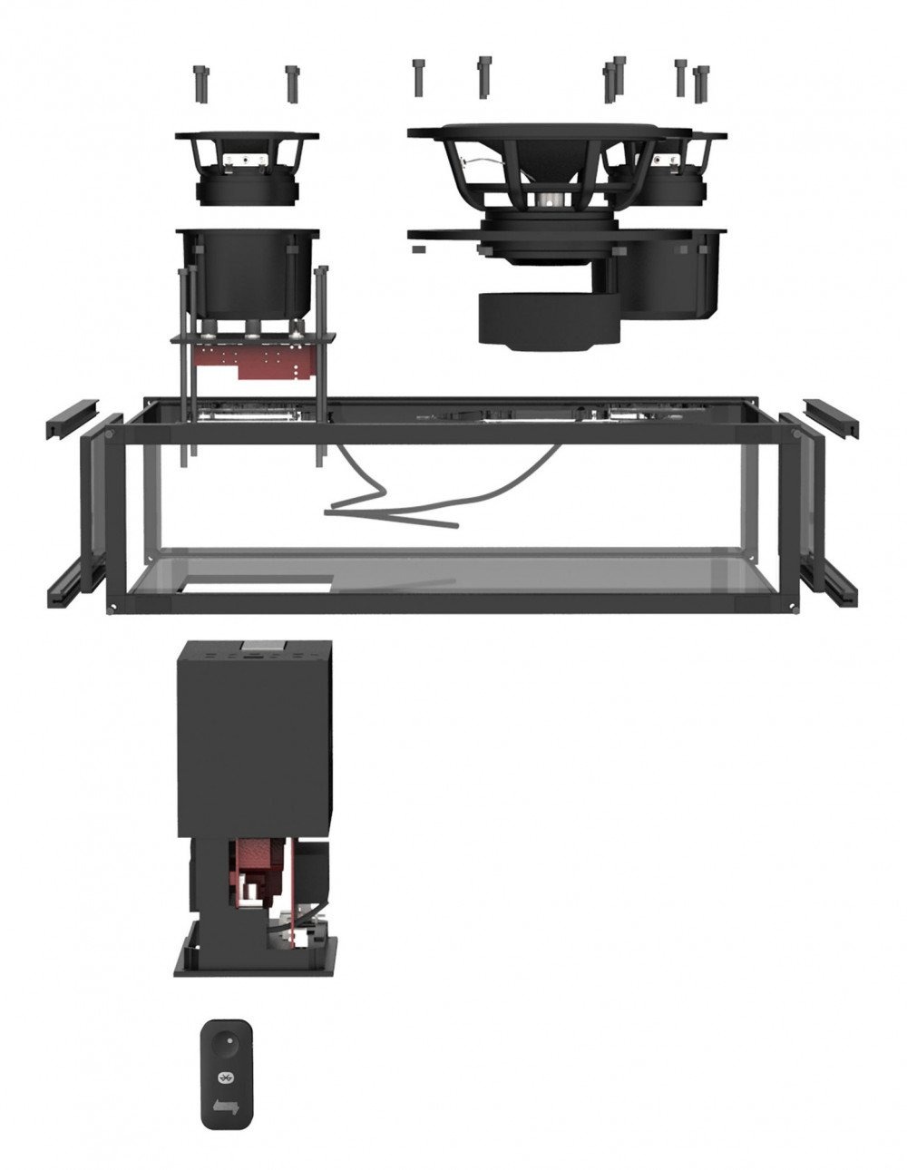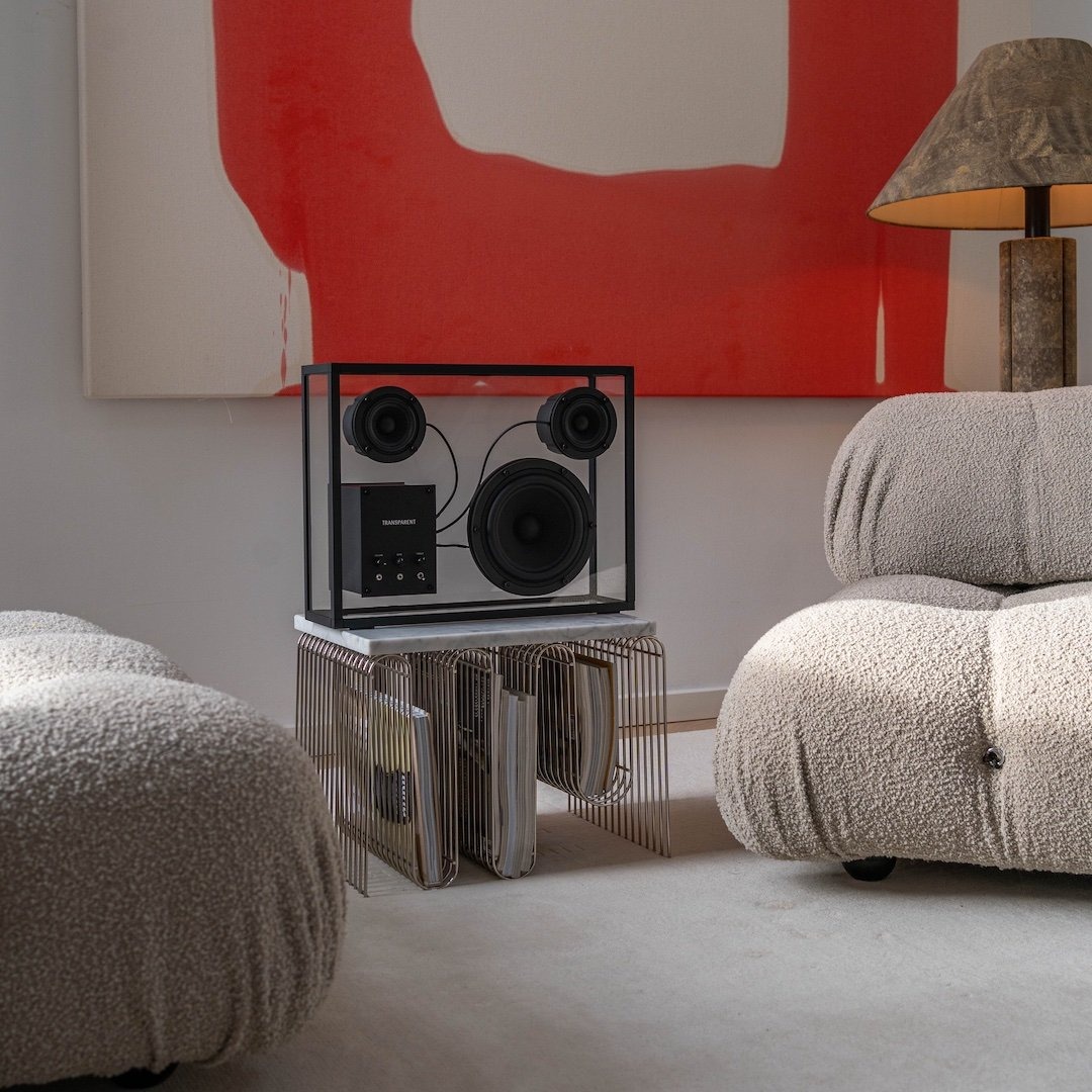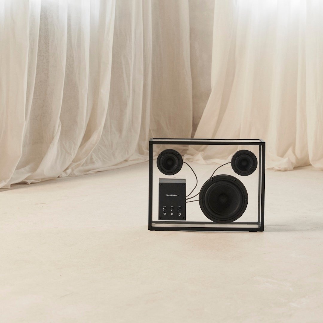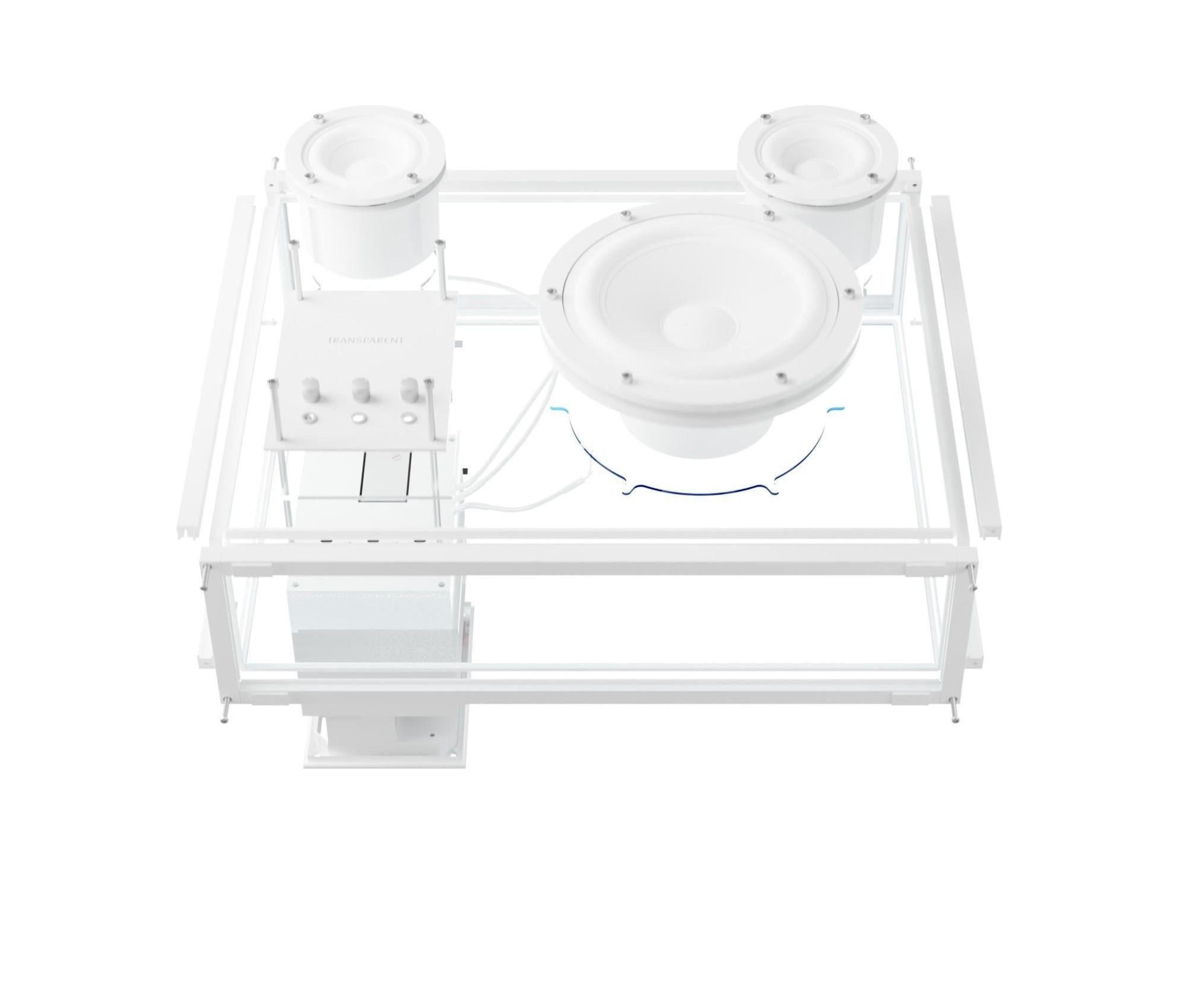 The Transparent Speaker combines minimalist design with high-quality sound. Its aluminium body with tempered glass panels reveals the internal components, delivering a modern aesthetic. Featuring Bluetooth 5.0, true wireless pairing, and dual AUX inputs, it offers versatile connectivity and 360° immersive audio. With 2 × 3″ full-range drivers and 1 × 6.5″ woofer in a sealed ~10.2 L cabinet, output power reaches 100–120 W with frequency response of 35 Hz–20 kHz.