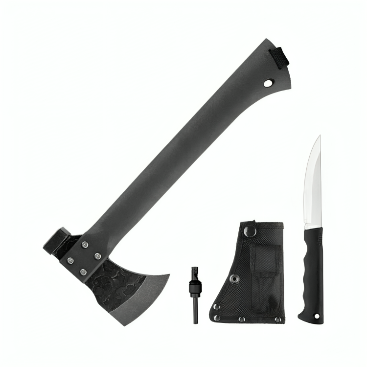 | Materials | High-Carbon Stainless Steel (axe & knife), Magnesium (fire starter), Canvas (sheath), Rubber/Ergonomic handle |