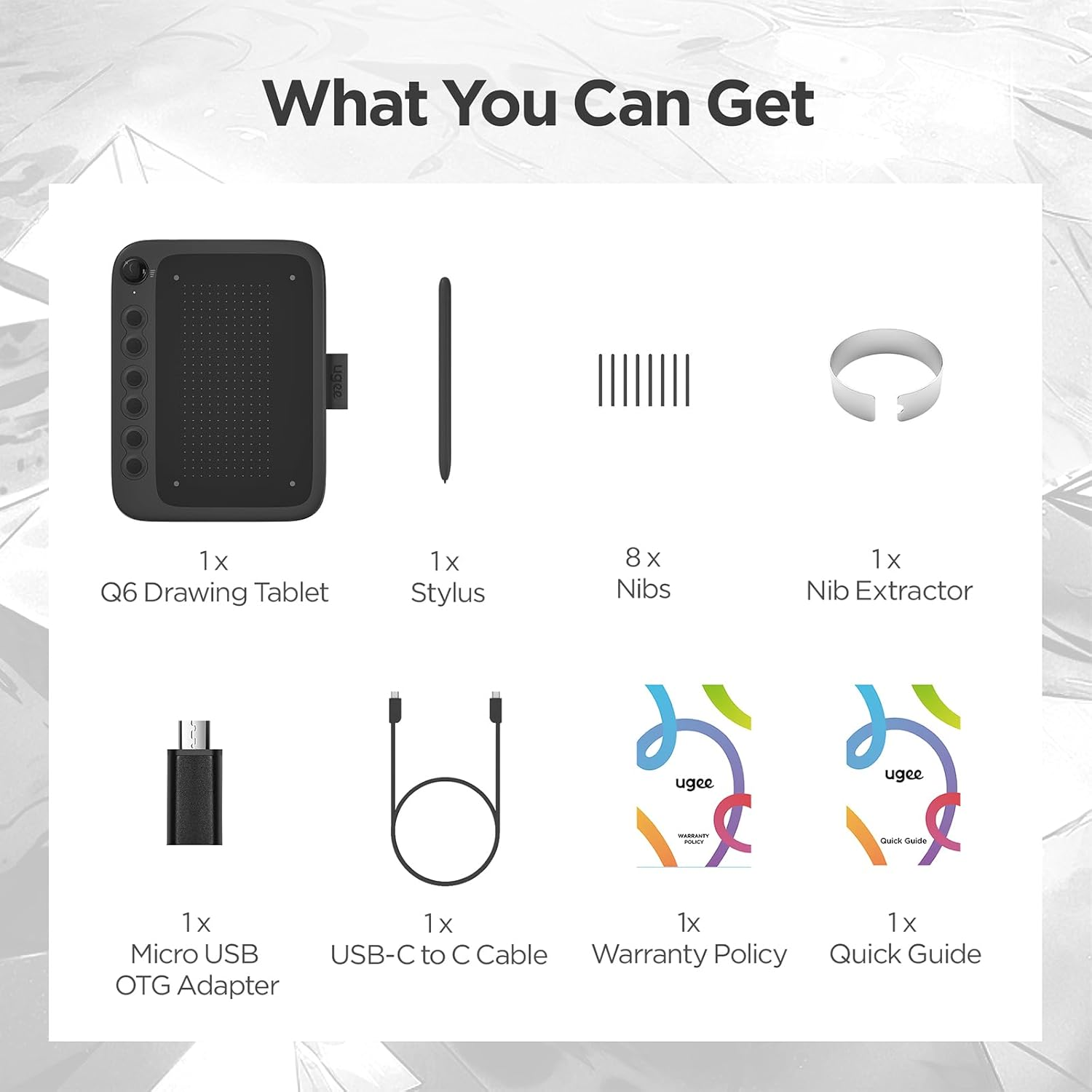 The UGEE Q6 6″ Drawing Tablet for Android is a compact and powerful digital drawing solution designed for artists, designers, and creators on the go. Built for effortless mobile creativity, this pen tablet requires no drivers—simply connect it to your Android device using the included USB-C cable and start drawing instantly.