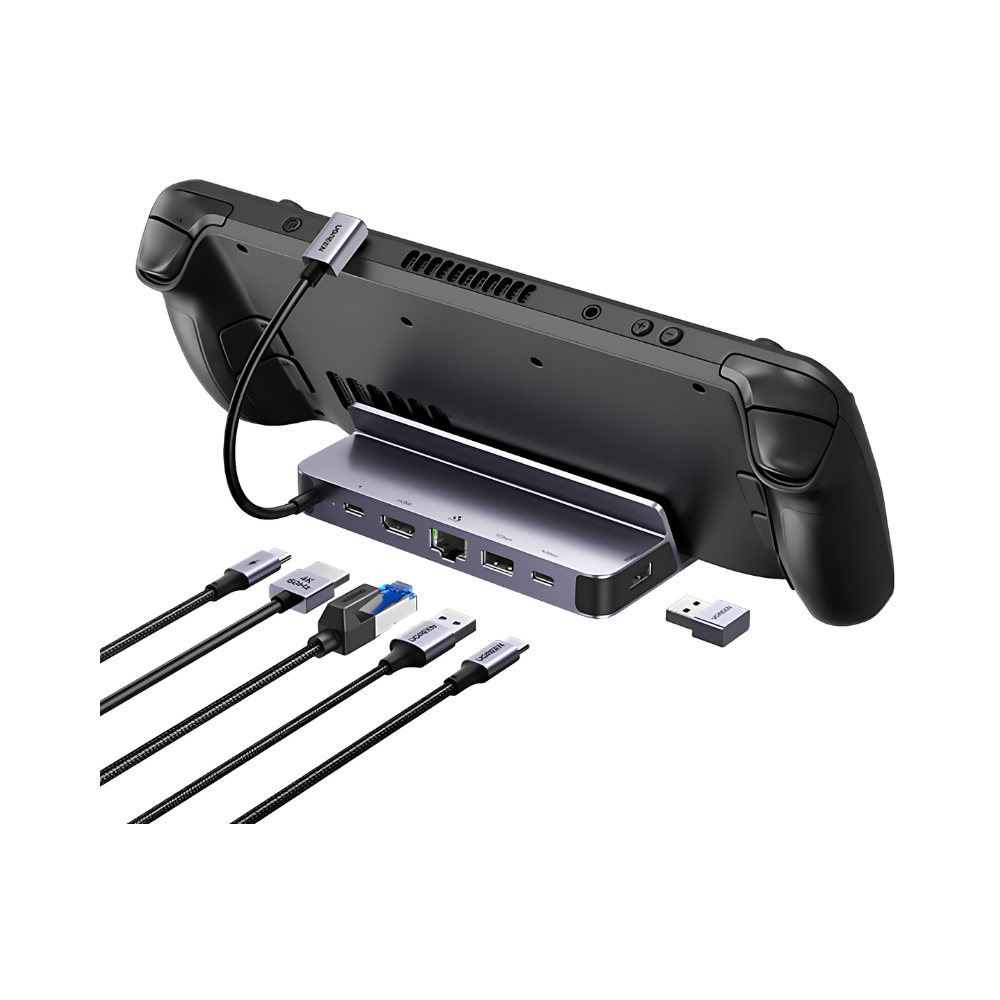 The UGREEN 15388 6-in-1 Universal Docking Station is a compact and versatile USB-C hub designed to expand your device’s connectivity. Ideal for devices like the Steam Deck, ROG Ally, and iPhone 15 Pro/Pro Max, it features a 90° angled connector and multiple ports for seamless gaming, productivity, and media experience.