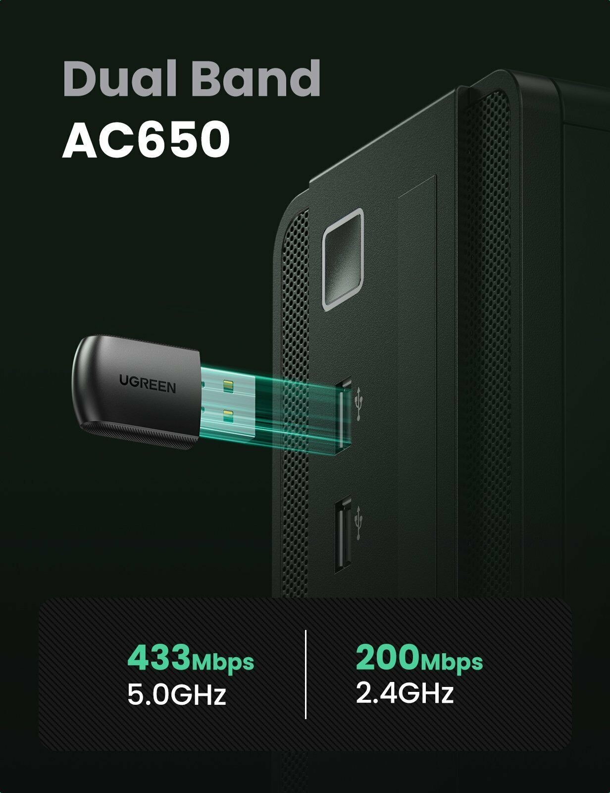 The Ugreen 20204 AC650 Dual-Band Wireless USB Adapter is a compact and powerful solution to upgrade your PC or laptop with fast and stable Wi-Fi connectivity. Supporting the 802.11ac standard, this adapter delivers wireless speeds of up to 650Mbps — with 433Mbps on the 5GHz band and 200Mbps on the 2.4GHz band — ideal for smooth HD streaming, lag-free online gaming, and fast file downloads. The nano-sized form factor allows for plug-and-forget convenience, making it perfect for travel or minimalist setups. Compatible with Windows, macOS, and Linux, the adapter also supports WPA/WPA2 encryption for secure connections.