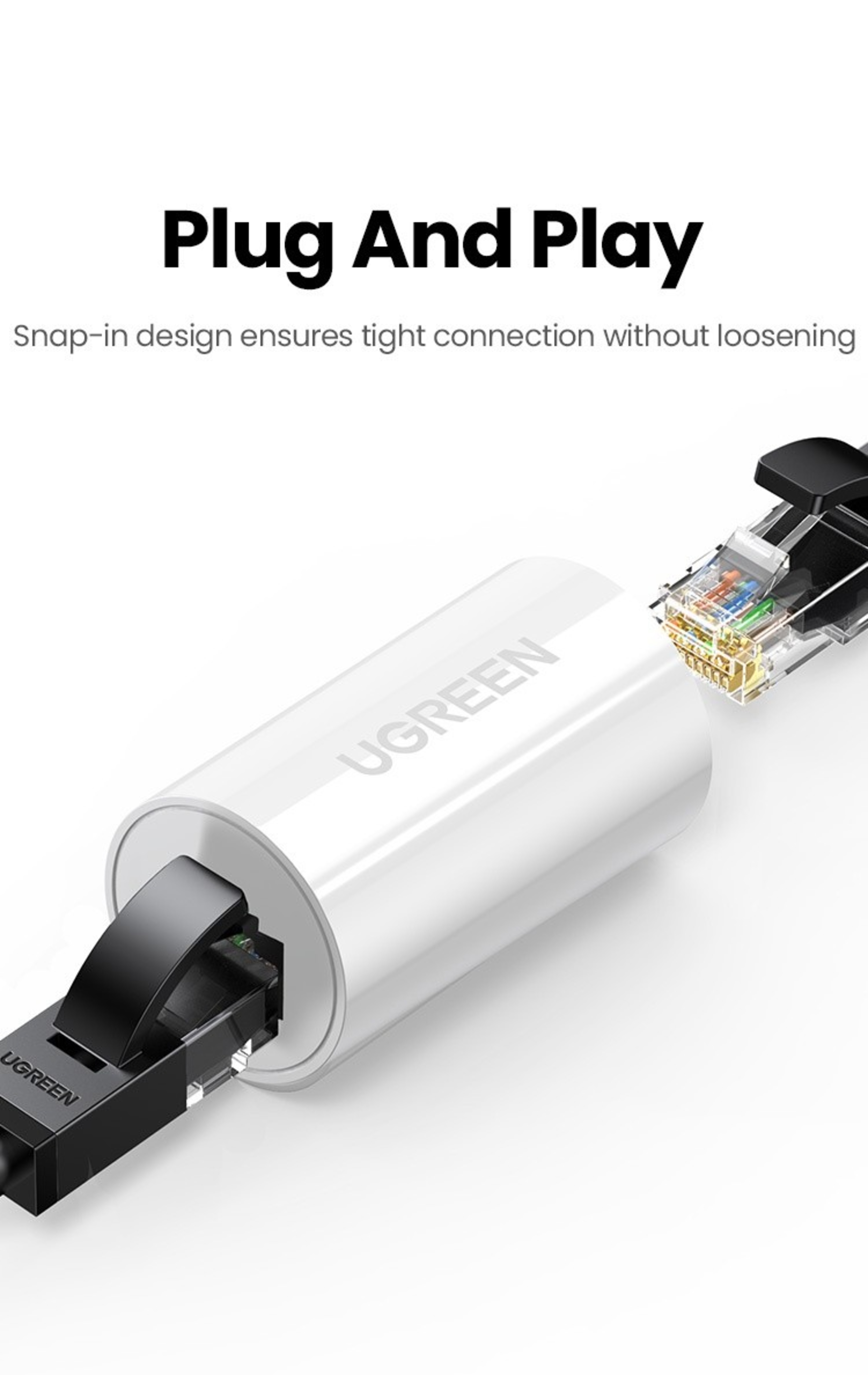 The Ugreen 20391 RJ45 Ethernet Connector (White) is a high-performance keystone jack designed for seamless and stable Ethernet connectivity in home or office networks. Compatible with Cat 6 and Cat 5e cables, it supports gigabit transmission speeds and fits standard keystone wall plates, patch panels, or surface mount boxes. With gold-plated contacts and a tool-free punch-down design, this connector ensures reliable signal transmission, reduced interference, and a clean professional setup.