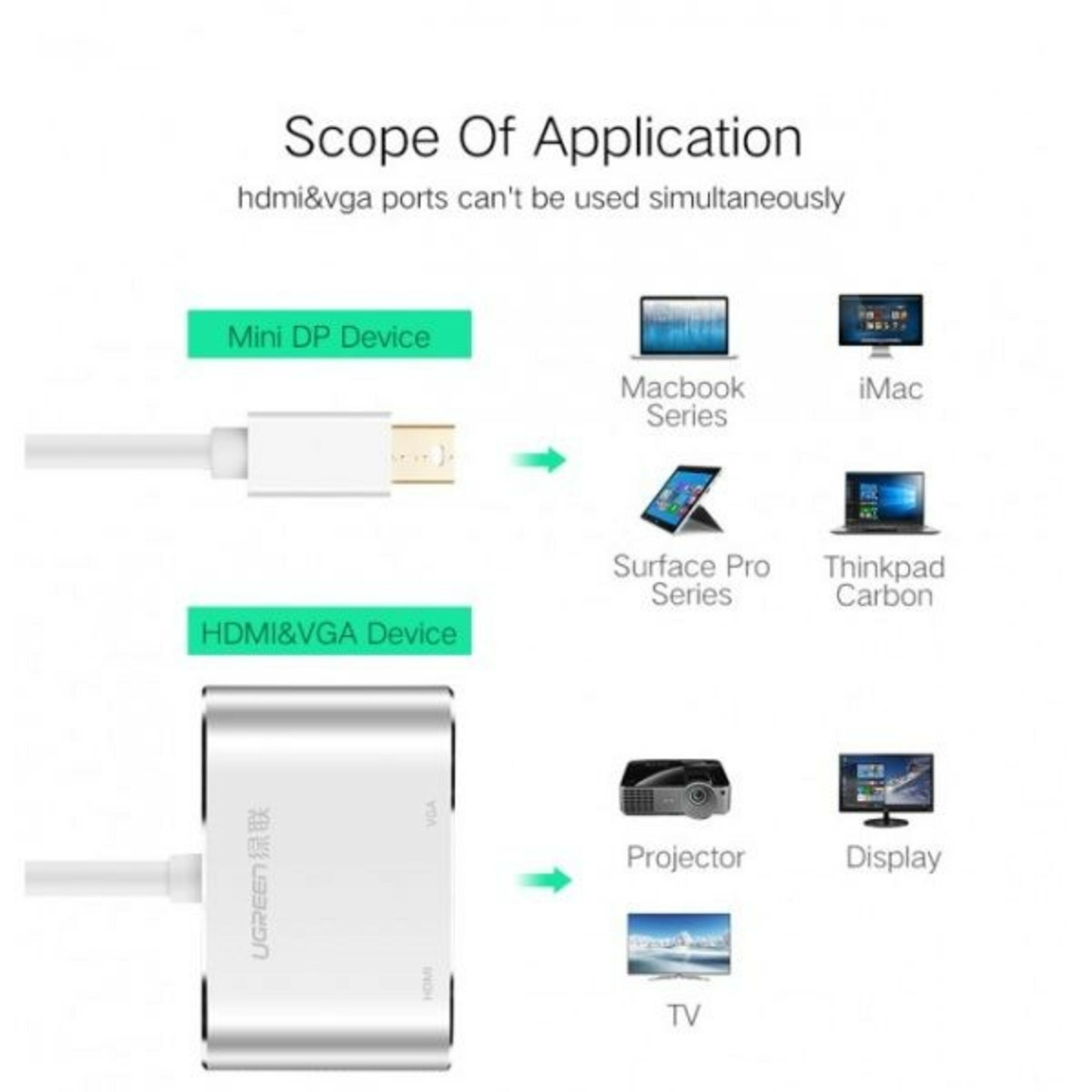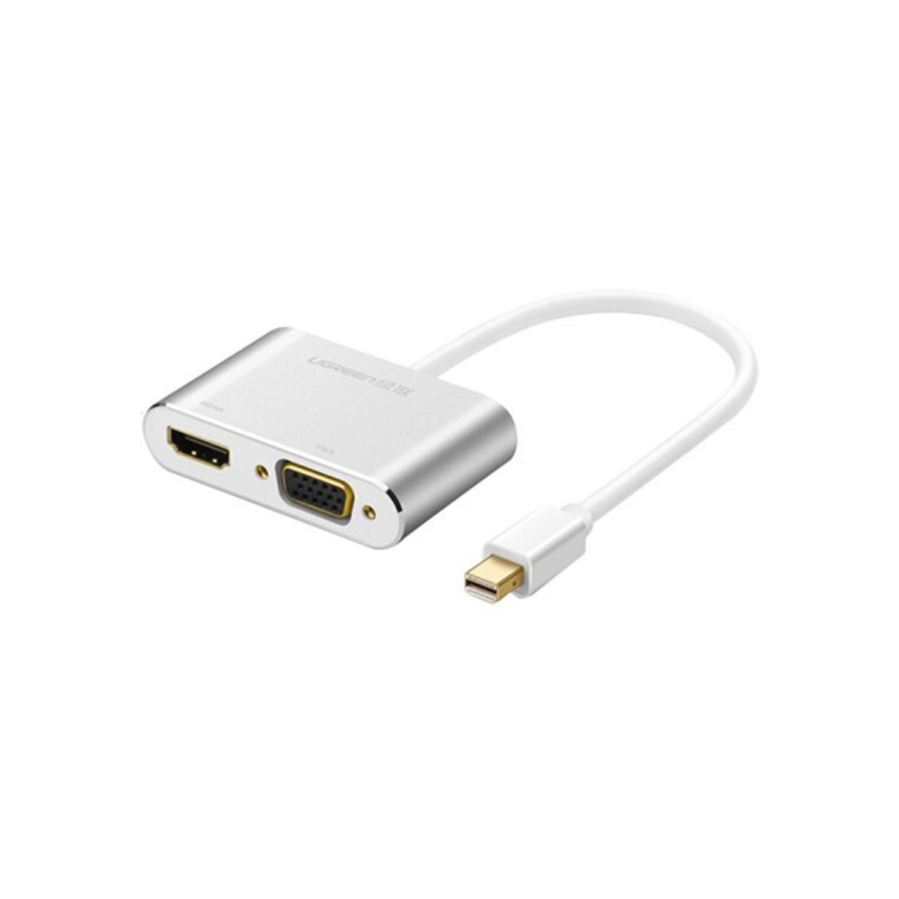 The Ugreen 20421 Mini DisplayPort to HDMI + VGA Converter (Silver) is a versatile dual-output adapter that lets you connect your Mini DP-equipped laptop or desktop to external displays via HDMI or VGA. It supports video output to either one HDMI or one VGA display at a time (not simultaneously), making it ideal for presentations, multi-display setups, or extending your desktop. With support for resolutions up to 1080p Full HD and a sleek aluminum design, this compact adapter is perfect for travel, classrooms, or the office.