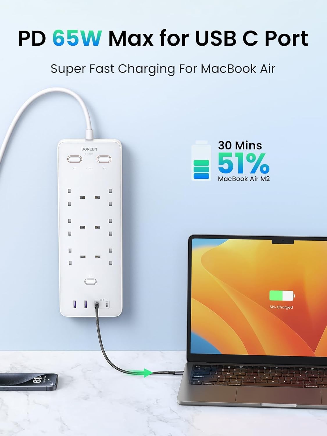 “All my USB‑C and AC outlets in one neat bar—charging laptop, phone and monitor without clutter.” — Verified UGREEN user review
