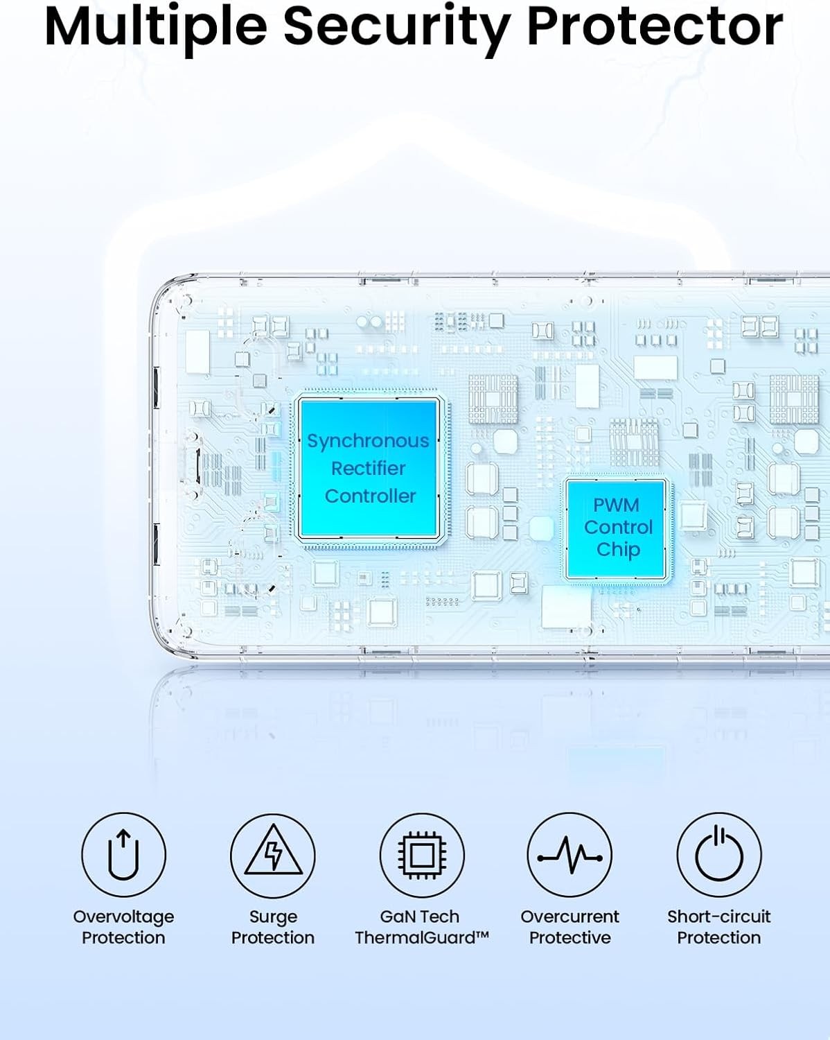 Technology & Safety | GaN fast‑charge tech, Thermal Guard real‑time monitoring, overload & fire protection |