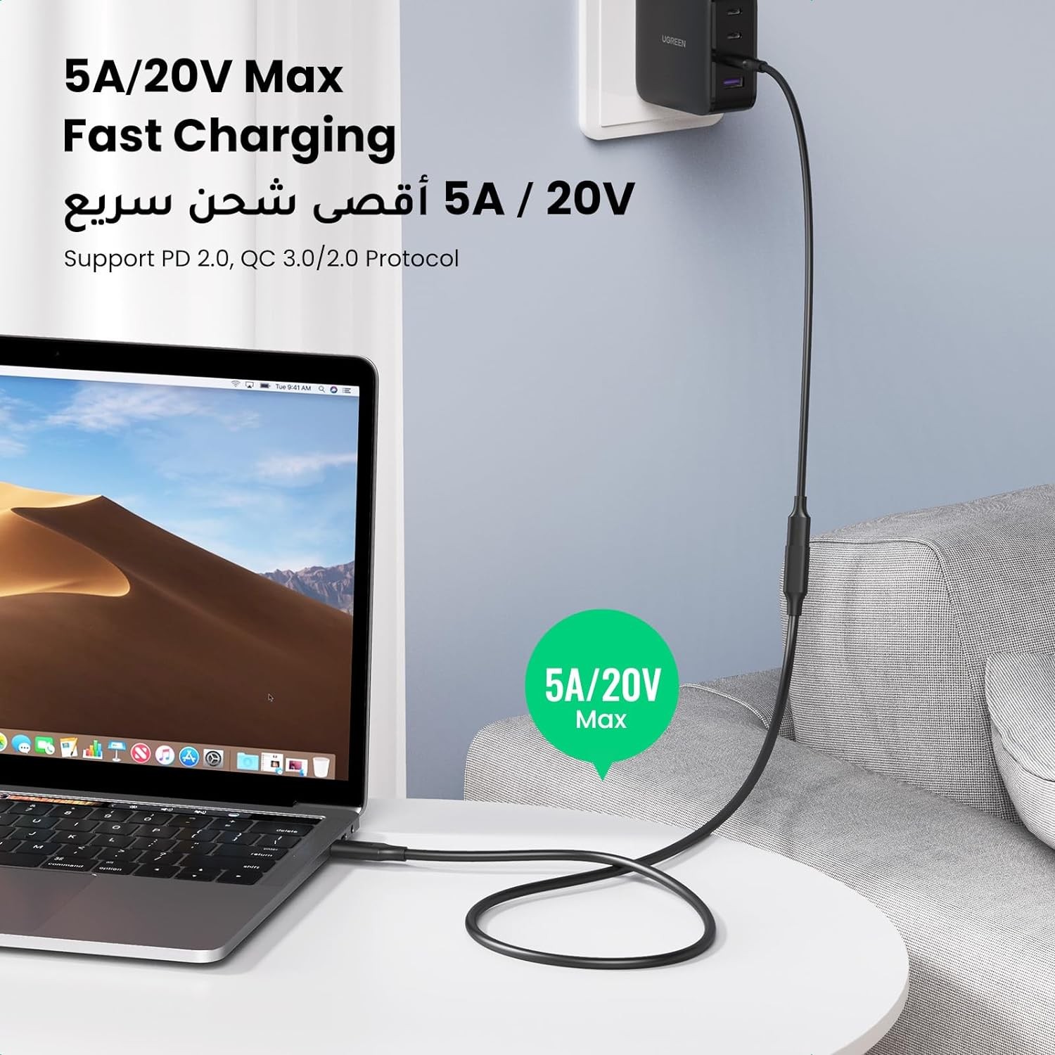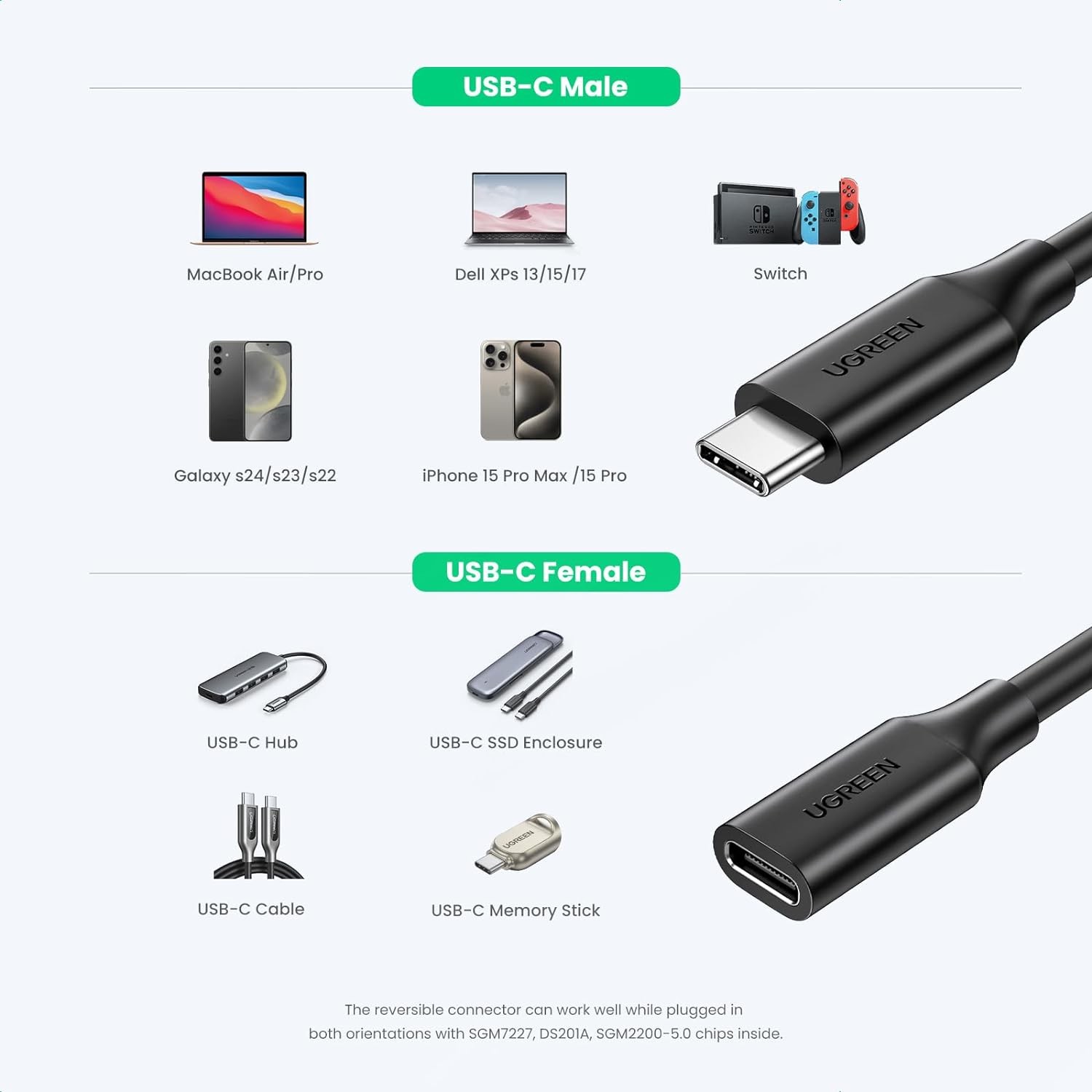 The Ugreen 40574 USB Type C Male to Female Extension Cable (0.5m, Black) is designed to extend the connection between USB-C devices, providing flexibility and convenience. Ideal for connecting your MacBook, Nintendo Switch, or smartphone to hard-to-reach ports, this extension cable supports data transfer speeds up to 5Gbps and charging up to 60W (20V 3A). It also supports 4K@60Hz video output, allowing you to connect your device to a monitor or projector for high-definition display. The cable features a durable black PVC jacket and nickel-plated connectors for enhanced durability and corrosion resistance.