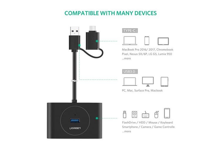 Ugreen – 40850 USB 3.0 Hub with USB-C Port 1m (Black)