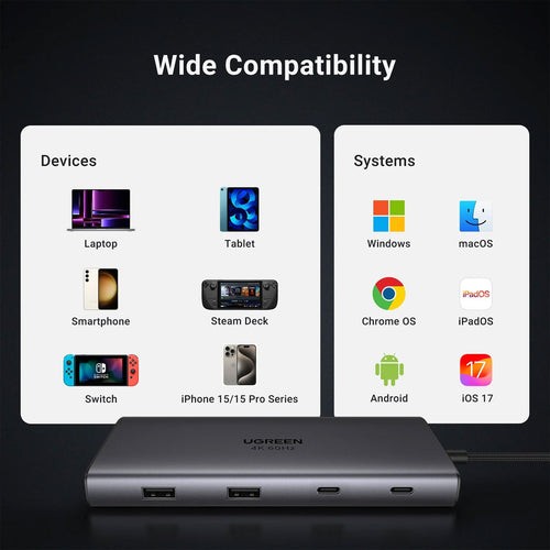 Unlock a full workstation experience with the Ugreen 45380 10‑in‑1 USB‑C Hub. This elegant dock transforms a single USB‑C port into multiple outputs: dual 4K HDMI displays, high‑speed data ports, wired Ethernet, and fast charging — all in a compact, aluminum‑wrapped chassis. It’s ideal for professionals, creators, and power users who need expanded connectivity without carrying a bulky docking station.