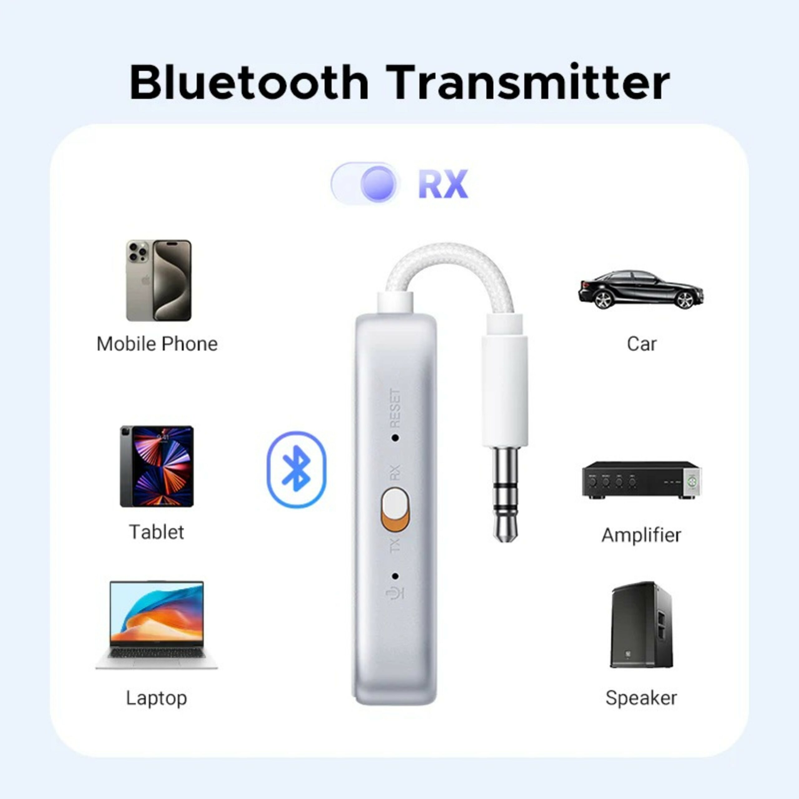 The Ugreen Bluetooth 5.0 Audio Receiver/Transmitter (45812) is a compact and versatile wireless audio adapter designed to bring modern Bluetooth connectivity to your favorite wired devices. With support for both TX (transmit) and RX (receive) modes, it seamlessly connects non-Bluetooth TVs, PCs, car stereos, or headphones with wireless speakers, earbuds, or smartphones. Featuring low latency audio via aptX technology, dual device pairing, and up to 10 meters of range, this adapter ensures stable, high-quality sound without delay. Its rechargeable battery offers up to 8 hours of use in a portable, plug-and-play design—perfect for home, office, or travel.