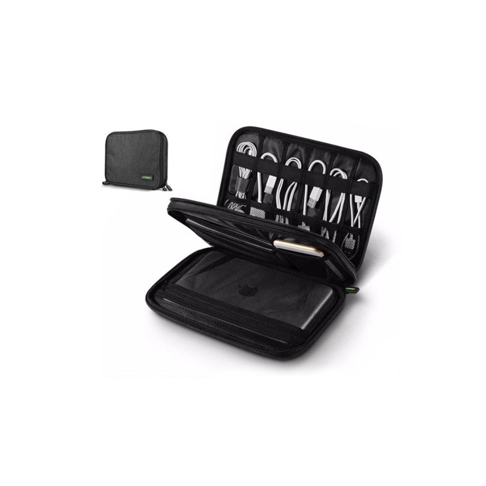 The UGREEN Storage Bag (Model 50147) in Gray is a smart, travel-ready organiser designed to keep your cables, adapters, power banks, external drives and other tech accessories neat and protected. With its double-layer design, water-resistant exterior and well-thought internal layout—featuring mesh pockets, elastic loops and a dedicated tablet compartment—this bag is ideal for both daily commuting and travel. At approx. 245 × 175 × 50 mm (9.6″×6.9″×2.0″) and only about 0.19 kg in weight, it fits easily into a backpack, carry-on or laptop bag. The durable nylon/linen blend outer shell and soft inner lining help protect your gear from bumps, scratches and tangles, while the double-zip opening gives quick access to your organised accessories.