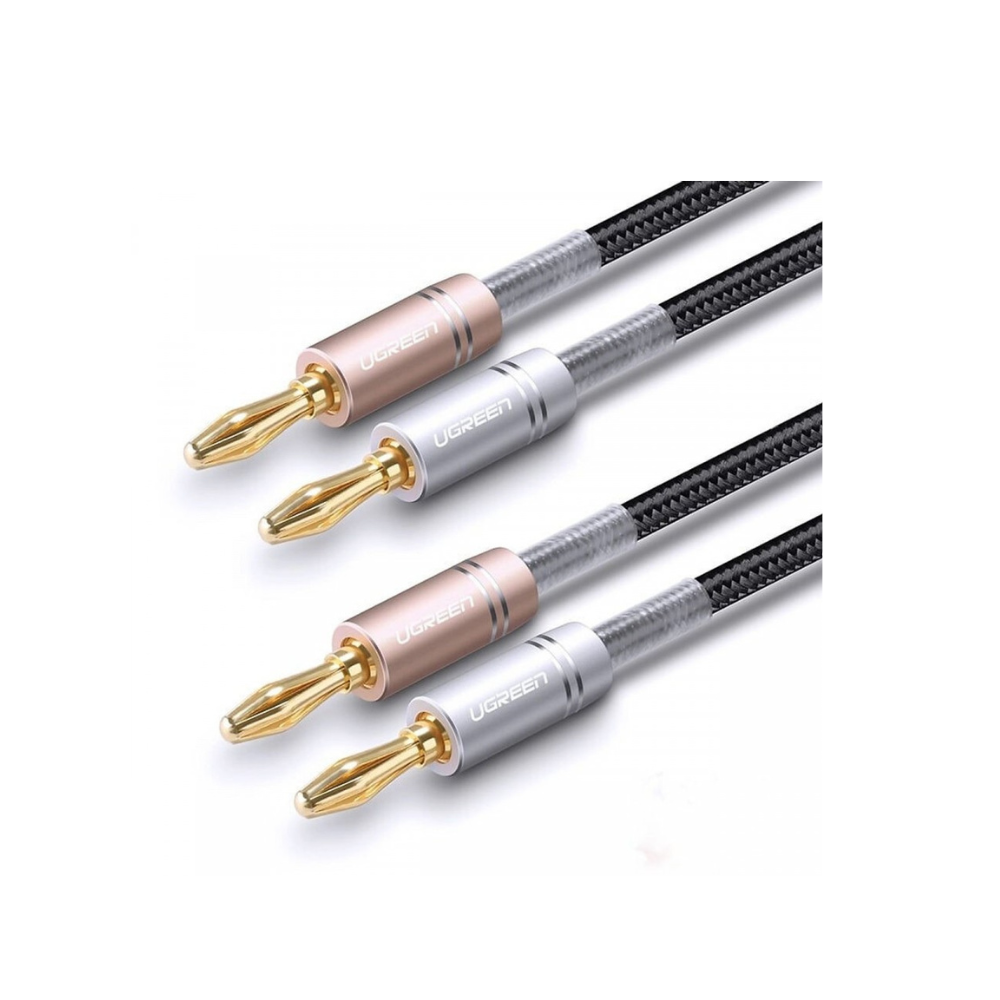 The UGREEN 50536 speaker cable is a high‑quality audio connection solution designed for stereo or hi‑fi systems, featuring gold‑plated banana plugs at each end and a premium nylon‑braided outer jacket for durability and performance. At 1 metre in length, this cable ensures clean, stable signal transmission between your amplifier or receiver and speakers, with reduced interference and corrosion‑resistant contacts. Ideal for audiophiles, home theatre setups or any sound system where quality counts.