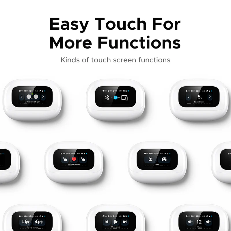 Charging Case Features | Full-color touchscreen, wallpaper support, music/call control |