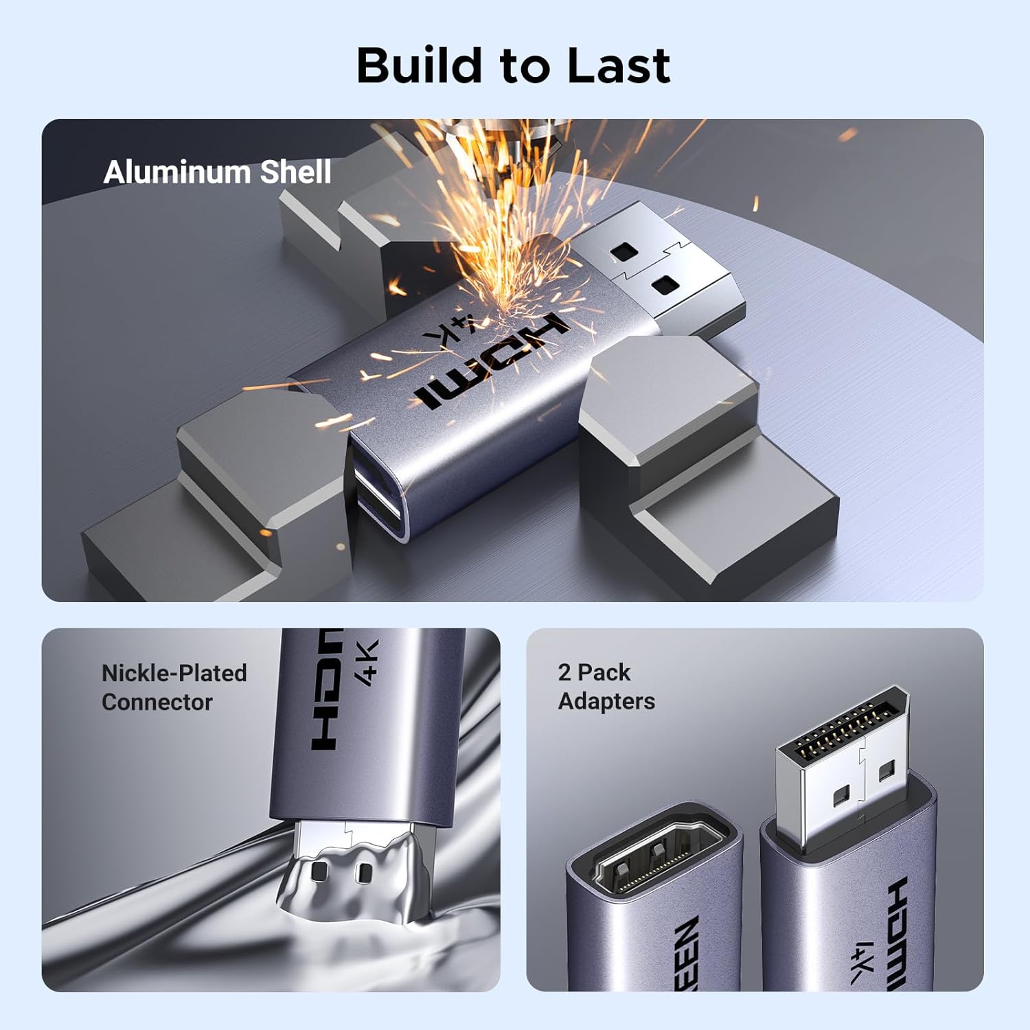 Each adapter in the pack supports multiple resolution options up to 4K Ultra HD at 30 Hz, along with 2K at 60 Hz and 1080p at 120 Hz, delivering clear, smooth visuals and immersive audio for work, entertainment, or multi-monitor setups. With a durable aluminum alloy housing, stable performance, and broad compatibility, this 2-piece set adds flexibility and expandability to your display configuration while maintaining a compact footprint.
