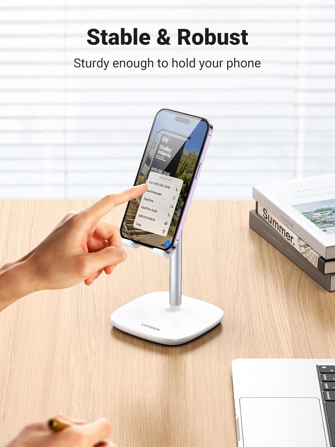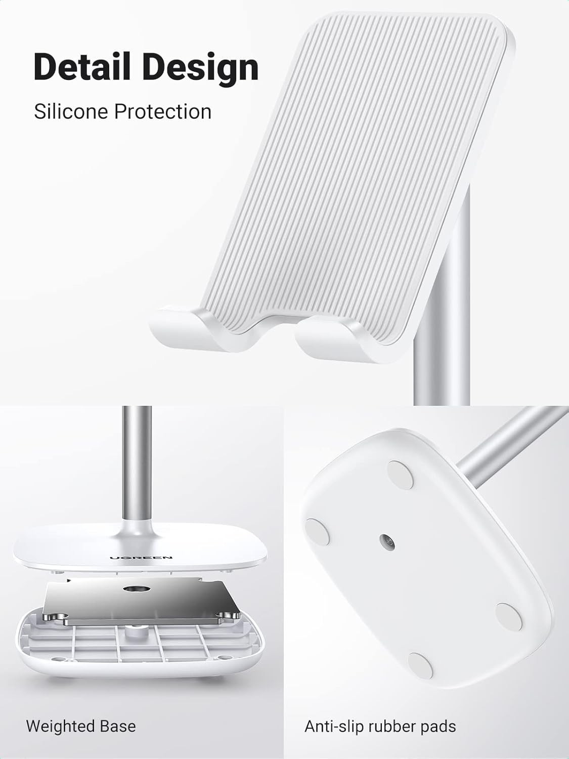 The Ugreen 60343 Adjustable Cell Phone Stand is designed to offer comfort and convenience for everyday device use. Featuring an adjustable height and multi-angle viewing design, it lets you position your smartphone or small tablet perfectly for video calls, streaming, or browsing. Crafted from durable ABS material with non-slip silicone pads, the stand ensures stability and protects your device from scratches. Its foldable and lightweight build makes it ideal for home, office, or travel use, providing a neat and hands-free setup wherever you go.