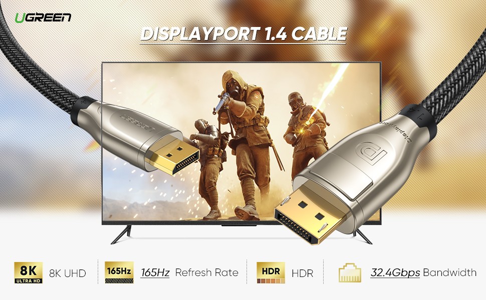 The UGREEN 60844 DisplayPort 1.4 Male‑to‑Male Cable (2 m) is a premium high‑performance connection solution built for high‑resolution monitors, gaming systems, professional workstations, and home theatre setups. With full support for the DisplayPort 1.4 standard and up to 32.4 Gbps bandwidth, this cable enables ultra‑clear video and high‑fidelity audio transmission—even at 8K @ 60Hz or 4K @ 144Hz.
