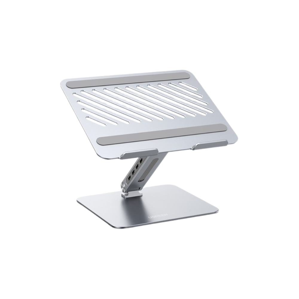 The UGREEN 60975 Laptop Stand with built‑in USB 3.0 Hub is a premium ergonomic workstation solution that elevates your laptop while expanding its connectivity. Crafted from sturdy aluminium alloy, it features adjustable height and angle settings to reduce neck and back strain during long sessions, while the integration of a multi‑port USB hub conveniently brings your mouse, keyboard, flash drives and external HDDs within easy reach.