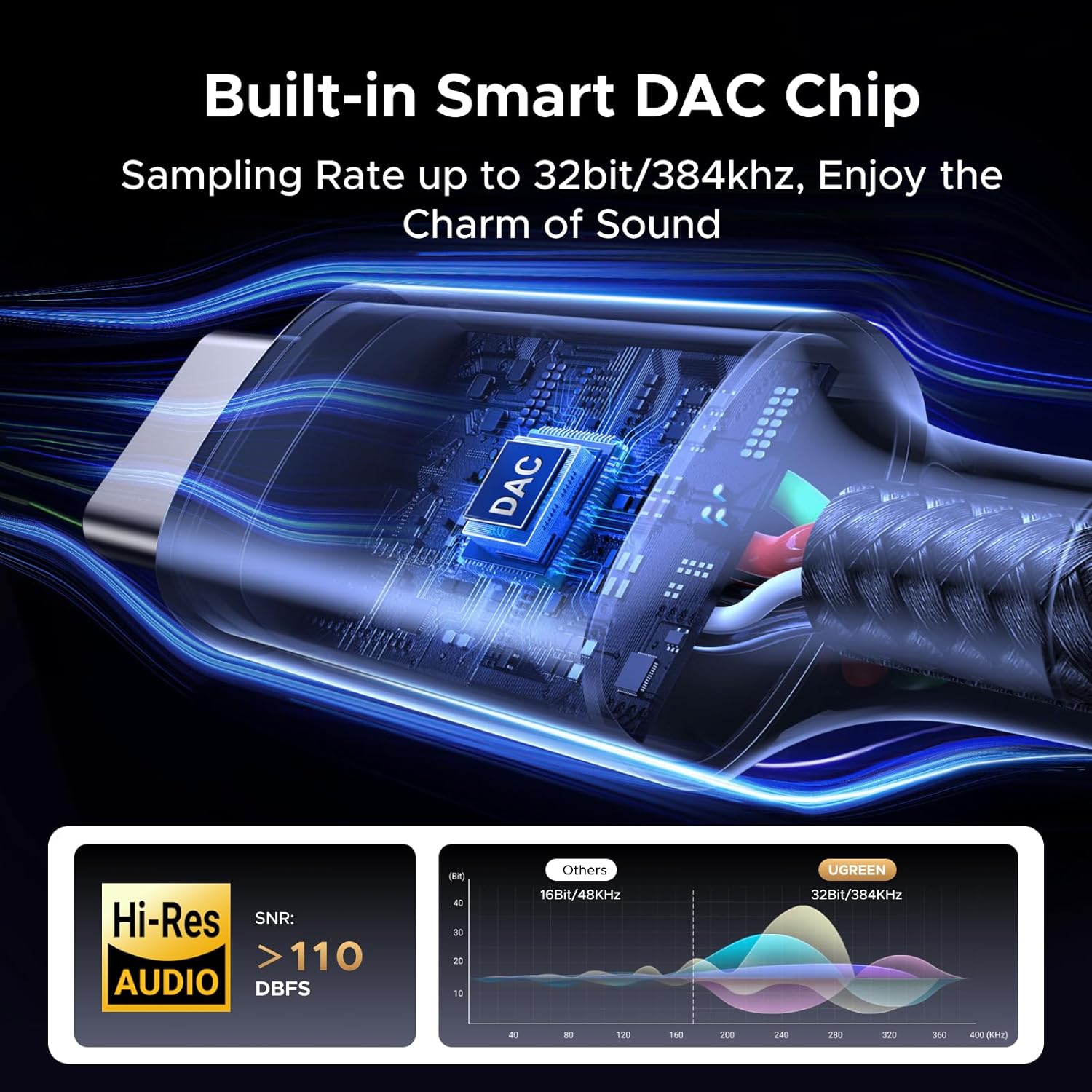 The Ugreen 65101 USB‑C to 3.5mm Audio Adapter is a high‑quality audio accessory that lets you connect your USB‑C‑equipped smartphone, tablet, or laptop to any device with a standard 3.5mm headphone jack — such as headphones, car stereos, speakers, or home audio systems. With a built‑in digital‑to‑analog converter (DAC) chipset, it delivers **high‑resolution audio** for crystal‑clear sound reproduction, making it ideal for music, podcasts, calls, and more without the need for separate drivers or software.