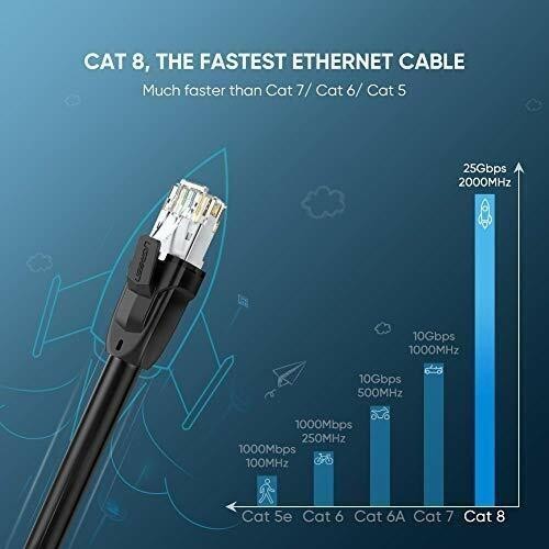 The UGREEN 70172 Pure Copper Patch Cord is a high-performance Ethernet cable designed for fast, stable, and reliable network connections. With a 5-metre length and 100% pure copper conductors, this CAT8 S/FTP cable supports ultra-high-speed data transmission up to 25Gbps–40Gbps and bandwidth up to 2000MHz, making it ideal for gaming, streaming, NAS setups, or professional network environments.