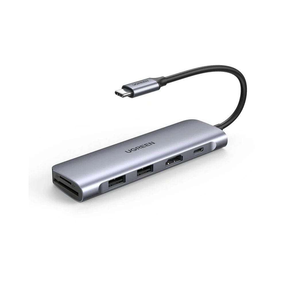 The UGREEN 70411 USB-C 6-in-1 Hub (Space Gray) is a sleek, compact and highly-functional expansion adapter for modern USB-C laptops, tablets and smartphones. With a USB-C male input it delivers a versatile output package: 1 × HDMI port supporting up to 4K @ 30Hz, 2 × USB-A 3.0 ports for high-speed peripherals, SD and Micro-SD (TF) card slots for media and file transfers, and a USB-C PD pass-through port supporting up to 100 W (20 V × 5 A) to power your notebook while you stay fully connected. :contentReference[oaicite:2]{index=2}