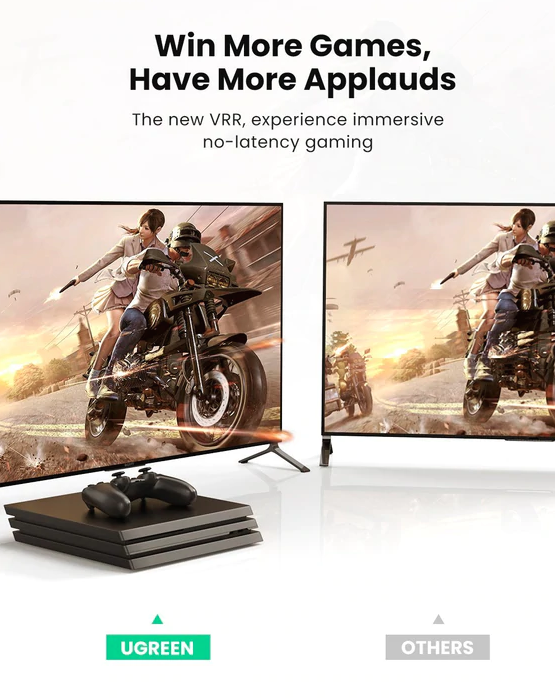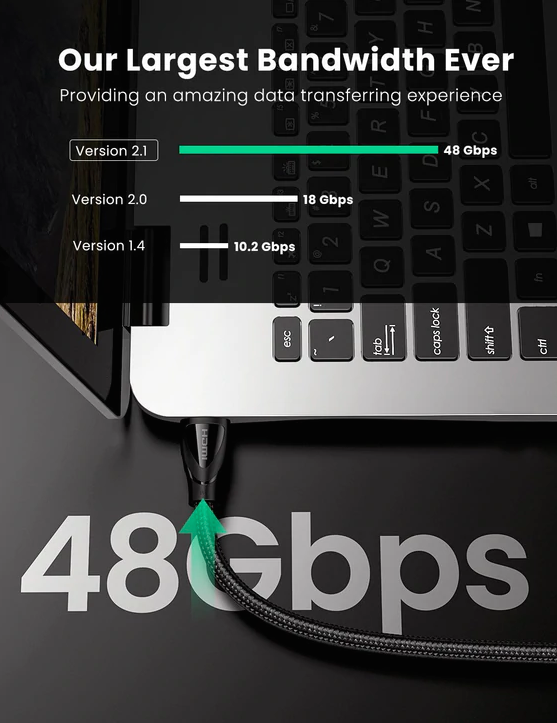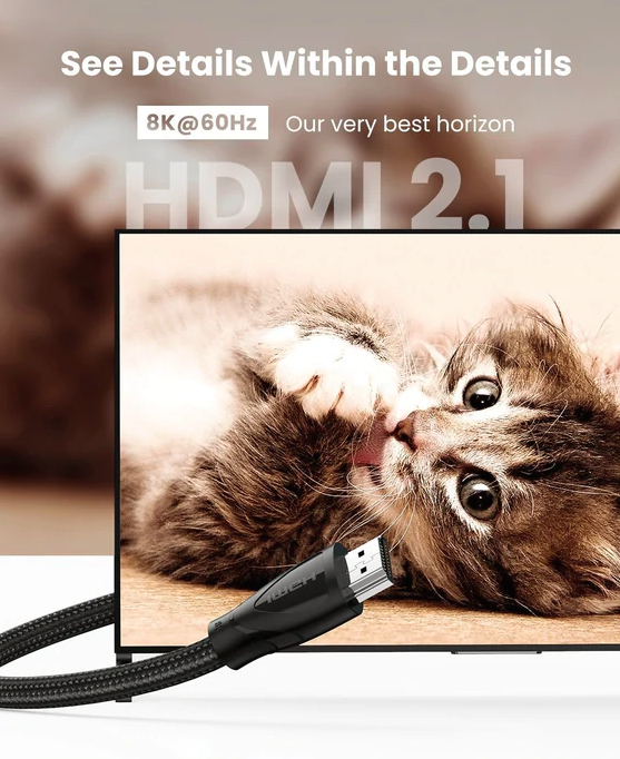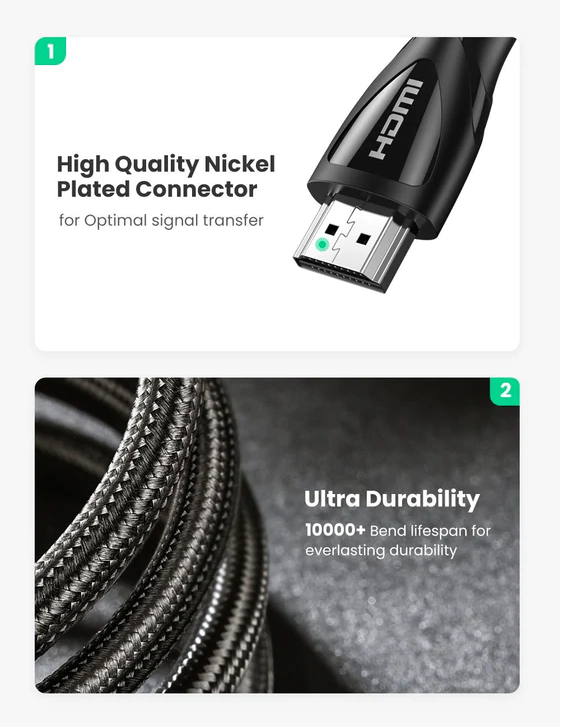 Its high-performance construction includes oxygen-free copper conductors, nickel-plated HDMI connectors, and a durable nylon-braided jacket that resists bending and wear. The UGREEN 80405 supports advanced HDMI features such as Dynamic HDR, Dolby Vision, HDR10+, eARC, VRR, QMS, and ALLM, ensuring complete compatibility with next-generation displays, gaming consoles, and audio receivers.
