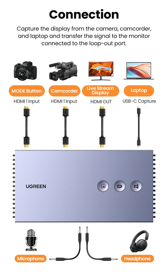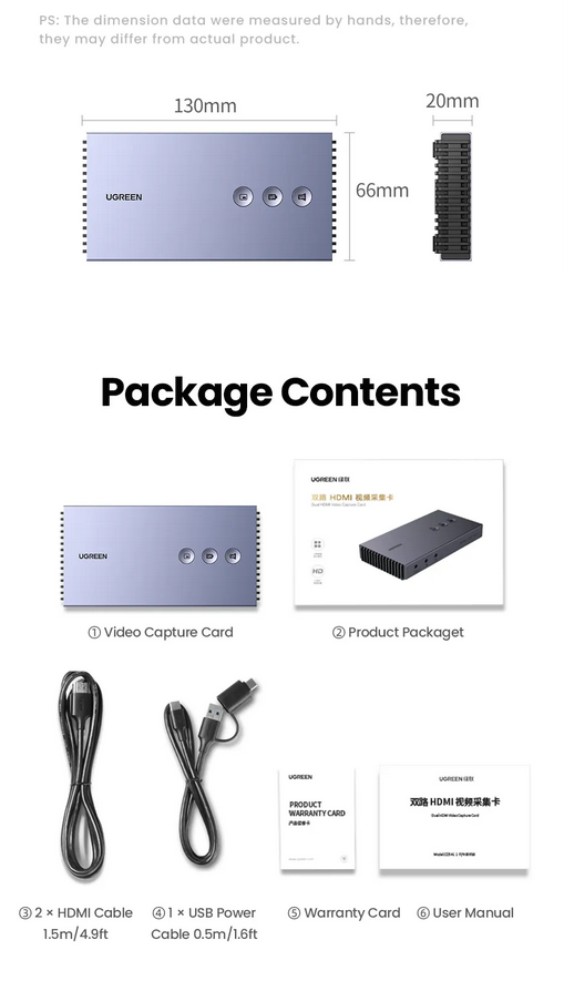 The Ugreen 80688 Dual HDMI Video Capture Card (Model CM541) is built for content creators, streamers and professionals who need to capture or switch between two HDMI sources simultaneously. With **2× HDMI IN** ports supporting up to 4K @ 30 Hz, plus a loop‑out via **HDMI OUT** up to 4K @ 30 Hz, this unit enables high‑quality multi‑source workflows. A high‑speed USB‑C (USB 3.0, up to 5 Gbps) port connects to your PC or Mac for capture up to Full HD 1080p @ 60 Hz. On‑board audio support with 3.5 mm mic/line‑in and headphone output gives you full control of audio monitoring and external commentary. Whether you’re streaming to OBS Studio, XSplit or capturing game consoles, cameras or computer sources, the Ugreen 80688 is a flexible and professional solution.