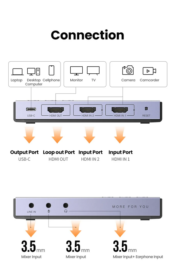 | Capture Output via USB‑C | USB‑C (USB 3.0) up to 5 Gbps; supports capture up to 1080p @ 60 Hz |