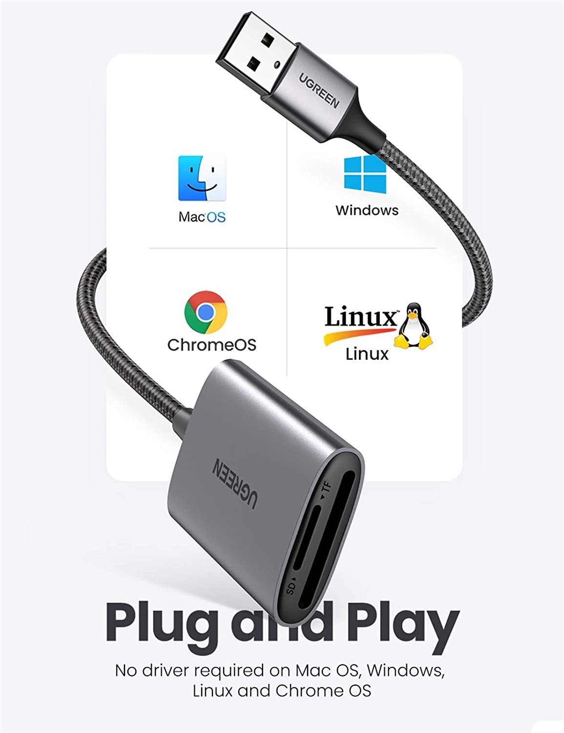 The Ugreen 80888 USB-C to SD/TF Memory Card Reader is a sleek and portable solution for fast and convenient data transfer between your memory cards and USB-C devices. Housed in a premium aluminum alloy casing, it combines durability with efficient heat dissipation. Featuring dual card slots supporting SD and microSD cards, this reader allows simultaneous reading of both cards for easy file management. With USB 3.1 Gen 1 speeds up to 5Gbps, it’s perfect for photographers, videographers, and professionals needing quick access to high-resolution media. Compatible with laptops, tablets, and smartphones equipped with USB-C, the Ugreen 80888 offers plug-and-play functionality with no drivers required.