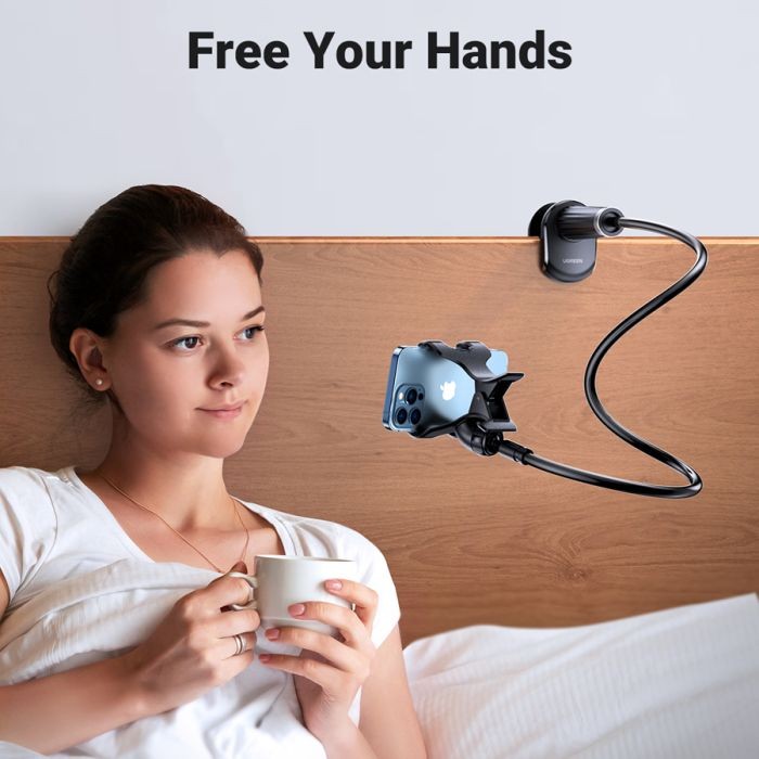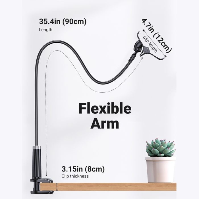 The Ugreen 80906 Multifunction Phone Clip Stand (90cm, Black) is a flexible and stable solution for hands-free smartphone use. Featuring a sturdy gooseneck arm and secure spring-loaded phone clamp, it allows you to position your device at the perfect height and angle for watching videos, video calls, streaming, or reading. The stand’s reinforced aluminum-magnesium alloy arm provides excellent stability while remaining highly flexible, and its anti-slip base clip securely attaches to desks, nightstands, or countertops. With a total reach of 90cm, this phone holder brings convenience and comfort to your everyday use whether at home or the office.
