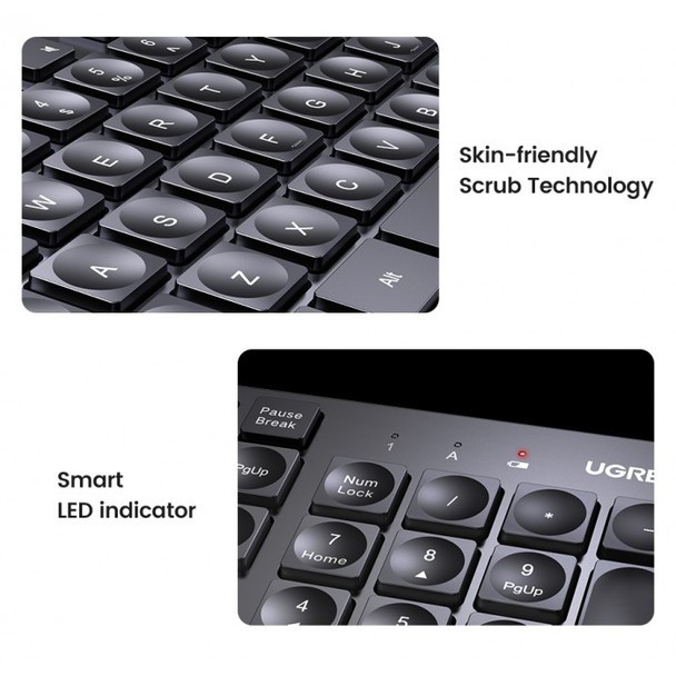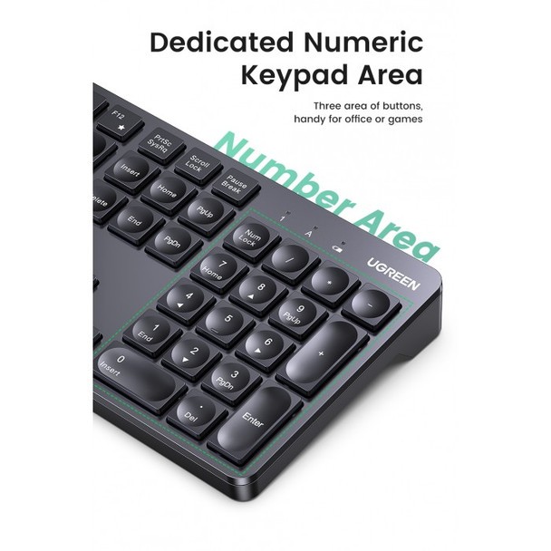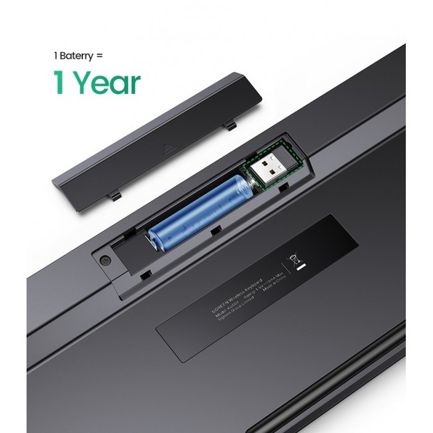The Ugreen 90250 2.4 GHz Wireless Keyboard (Black) offers a sleek, quiet, and efficient typing experience designed for both work and home setups. Using a reliable 2.4 GHz wireless connection with a compact USB receiver, it ensures stable, lag-free input without the clutter of cables. The low-profile scissor-switch keys provide smooth and responsive feedback while maintaining a whisper-quiet operation—perfect for offices and shared spaces. With its slim aluminum-style frame, full-size layout, and long-lasting battery life, the Ugreen 90250 is built for comfort, style, and productivity on any desktop.