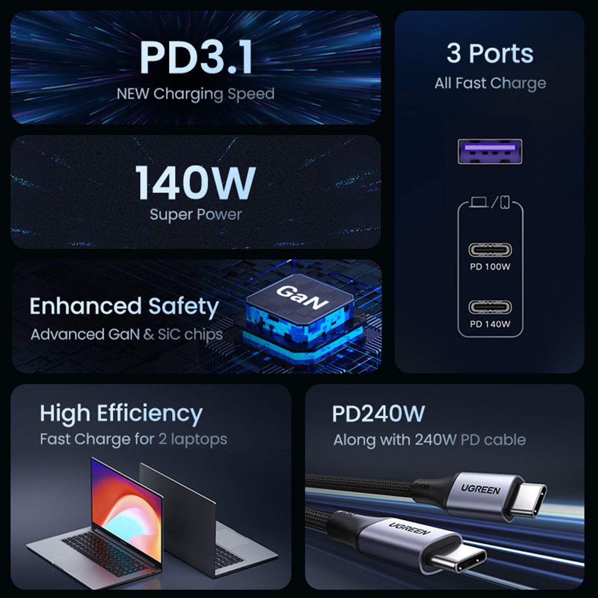 | Model | UGREEN 90322 (Nexode 140W GaN Fast Charger with Cable) |