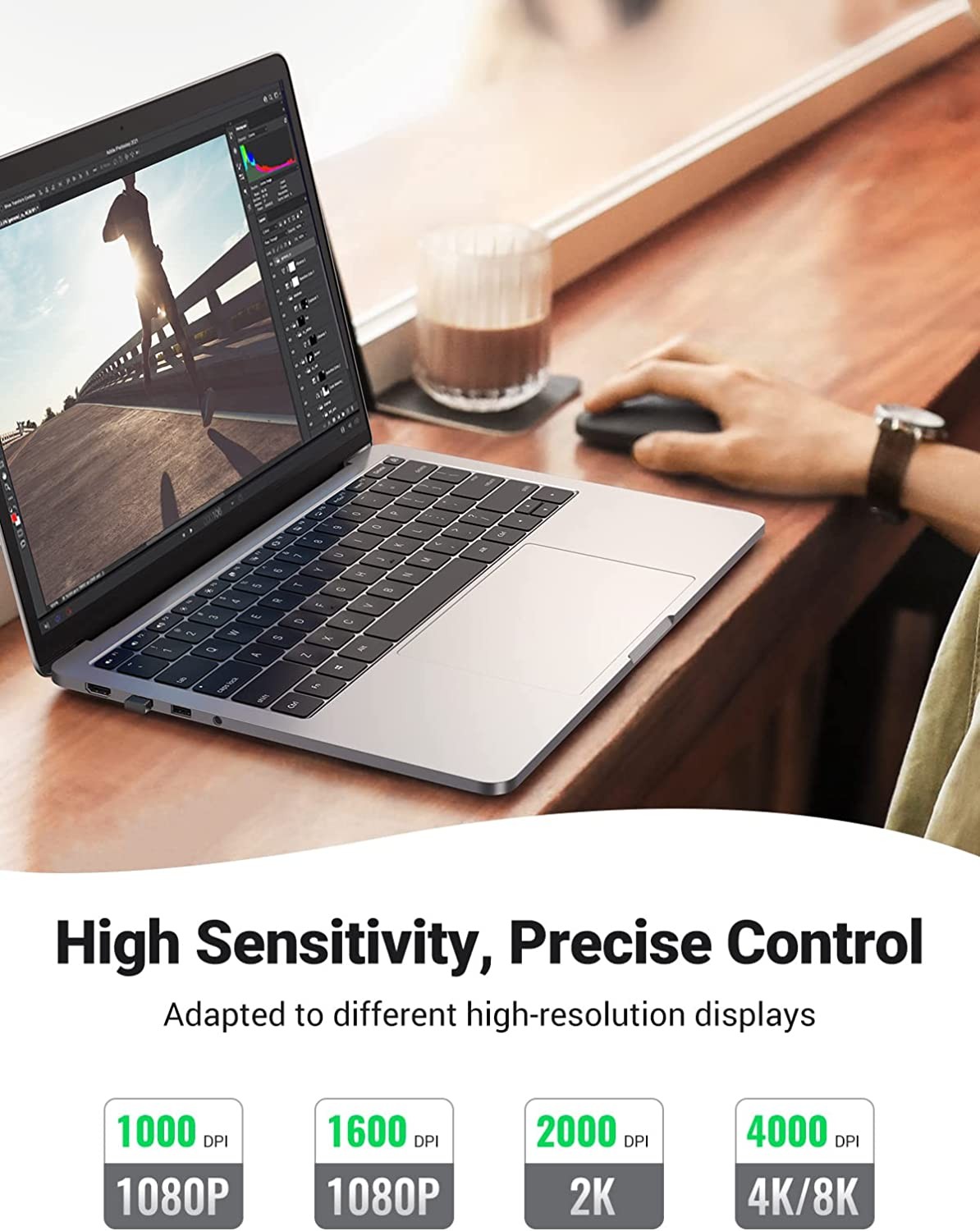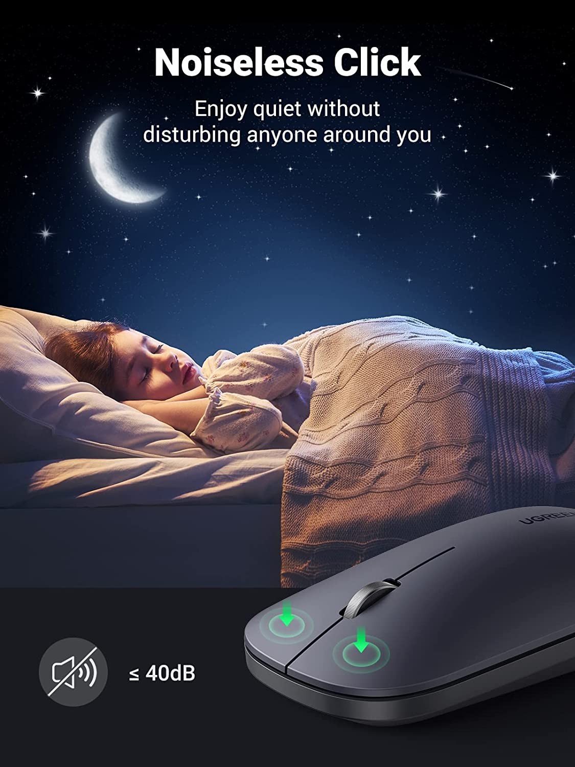The UGREEN 90372 Wireless Mouse in sleek black combines a slim, modern design with precise performance. Featuring a reliable 2.4 GHz wireless connection via a nano USB receiver, it provides smooth and stable cursor control up to 10 m. With four adjustable DPI levels (1000 / 1600 / 2000 / 4000), it ensures accurate tracking for productivity, multimedia, or gaming. Ultra-quiet clicks reduce noise for a distraction-free environment. Its lightweight, portable form factor makes it ideal for laptops, desktops, and home offices. Powered by a single AA battery (not included) with smart power-saving technology, it offers long-lasting performance across Windows, macOS, Linux, and Chrome OS.