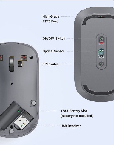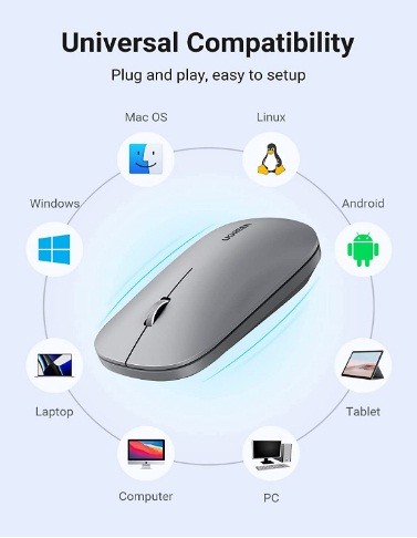 The UGREEN 90373 Wireless Mouse combines sleek, ergonomic design with high-precision performance. Operating on a reliable 2.4 GHz wireless connection via a nano USB receiver, it delivers smooth and stable cursor control up to 10 m away. With 4 adjustable DPI levels (1000 / 1600 / 2000 / 4000), it ensures precise tracking for work, gaming, or high-resolution displays. Ultra-quiet clicks reduce noise for a distraction-free environment, and its lightweight, portable design makes it perfect for laptops or home offices. Powered by a single AA battery (not included) with smart power-saving mode, it offers long-lasting performance across Windows, macOS, Linux, and Chrome OS devices.