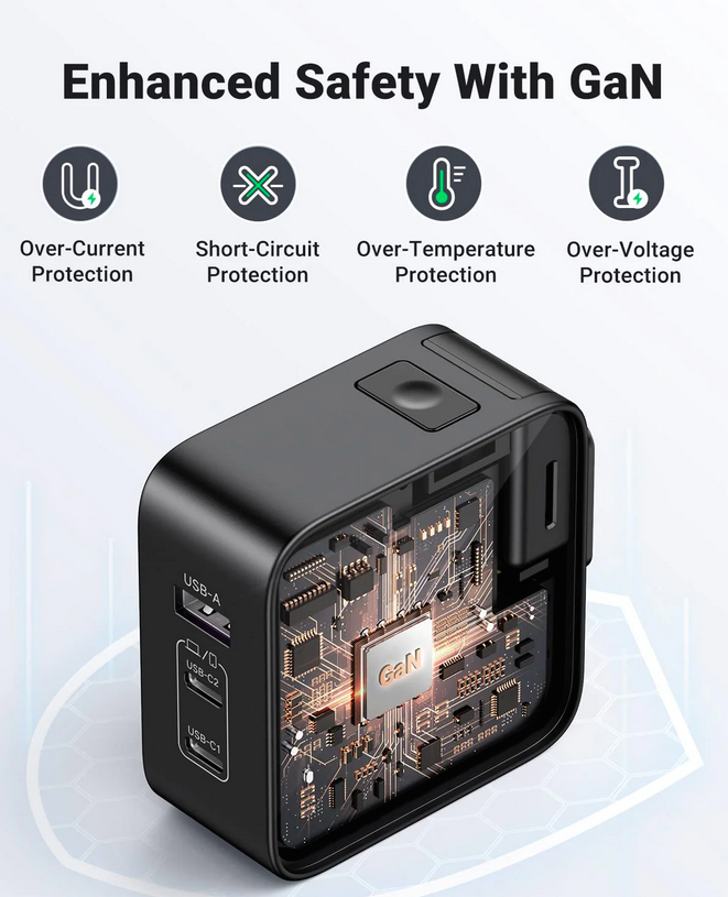 | Technology | GaN (Gallium Nitride) for high efficiency and low heat |