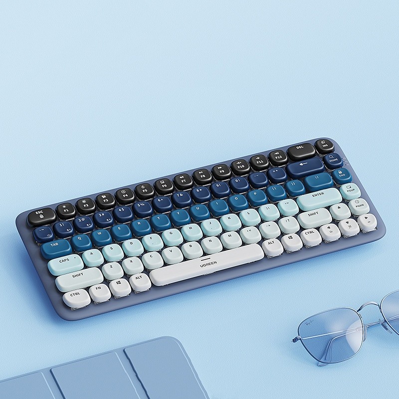 The **UGREEN FUN+ Mechanical Keyboard (Model 90755 / KU101)** in blue offers a perfect blend of compactness, aesthetics, and functionality. With its 75% layout (84 keys), it gives you a minimalist footprint while retaining all the essential keys for productivity and play. The low-profile brown mechanical switches provide a satisfying tactile feel, ideal for both long typing sessions and casual gaming.