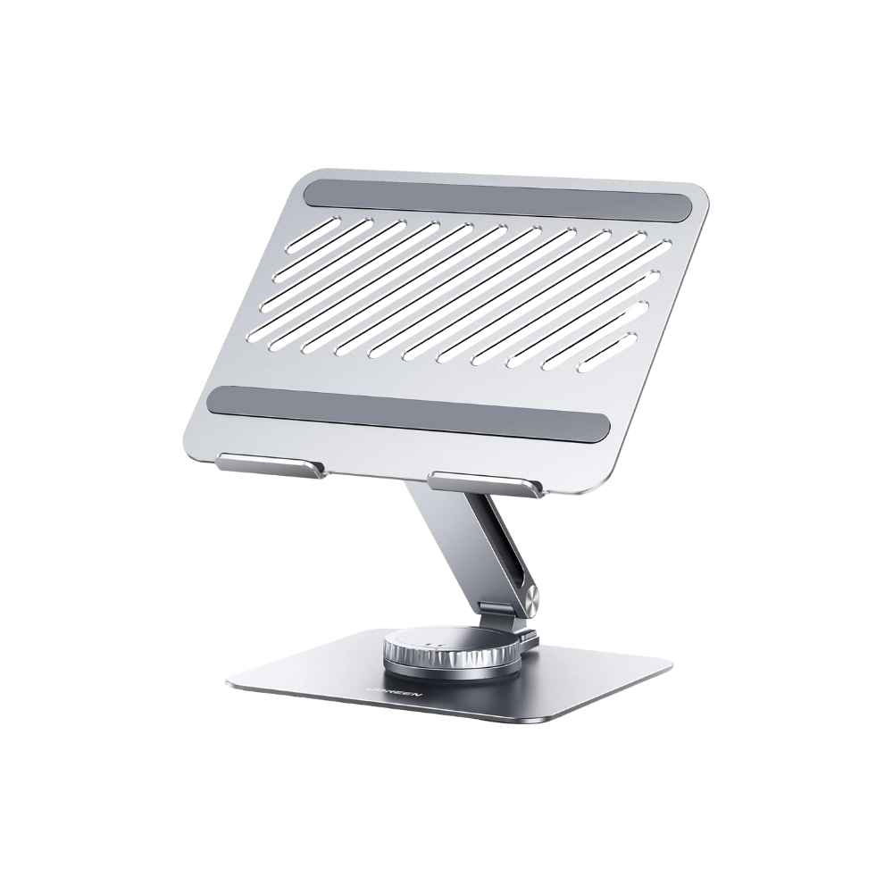 The UGREEN 90849 (LP592) Swivel Laptop Stand is an ergonomic, height-adjustable desktop stand that brings flexibility and convenience to your workspace. Built with a sturdy aluminum-alloy body and a 360° rotatable base, this stand allows you to smoothly swivel your laptop to any angle — ideal for sharing your screen during collaborative sessions or repositioning without picking up your device.