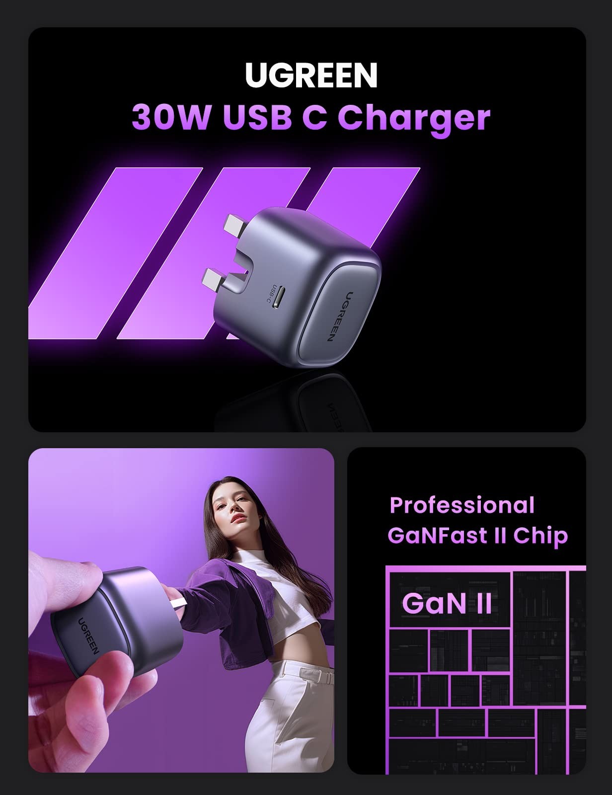 Ugreen – 90878 Nexode Mini 30W PD GaN Tech Charger