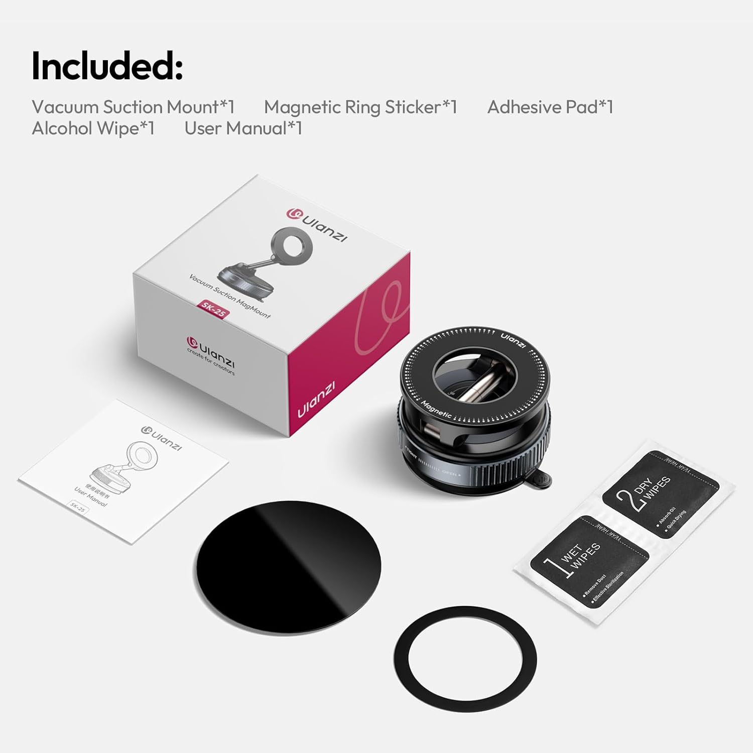 Unmatched Holding Power: SK-25 Phone Vacuum Suction MagMount loads up to 1kg with a robust suction cup that leaves no marks and withstands repeated use, ensuring a secure grip for your smartphone.