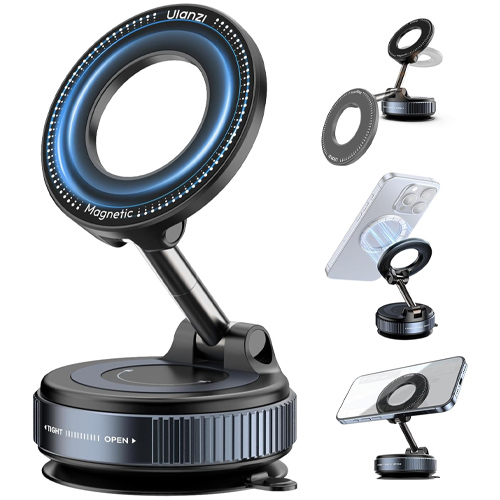360° Rotatable and Adjustable: SK-25 Vacuum Magnetic Phone Holder offers full flexibility with 360° rotation, tilting, and smooth movement, allowing you to view your screen from any angle with ease.