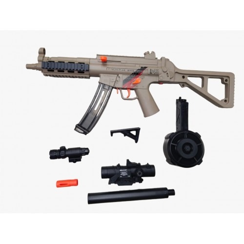 | Magazine / Capacity | Varies by model — typical electric variants use hi‑cap magazines in the ~100–250 gel ball range; toy/gas mags differ |