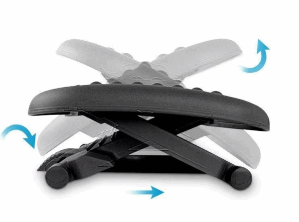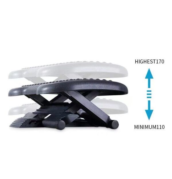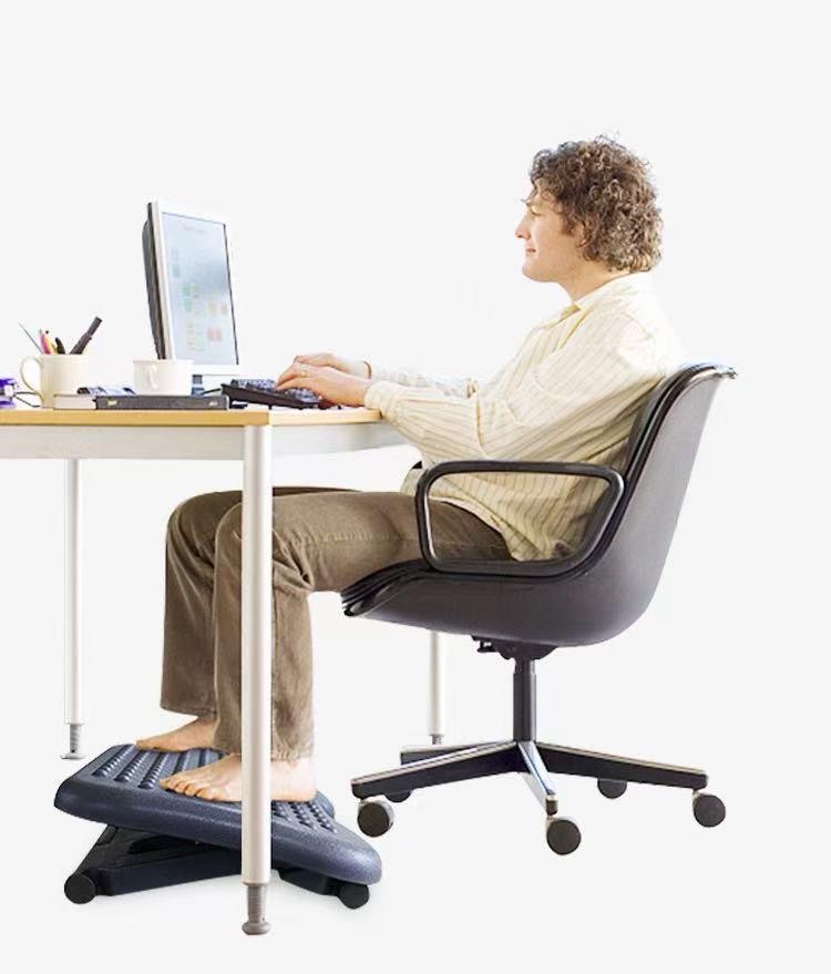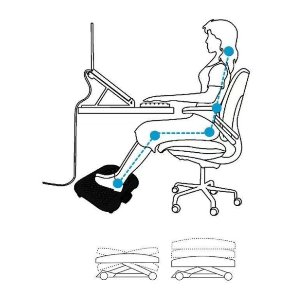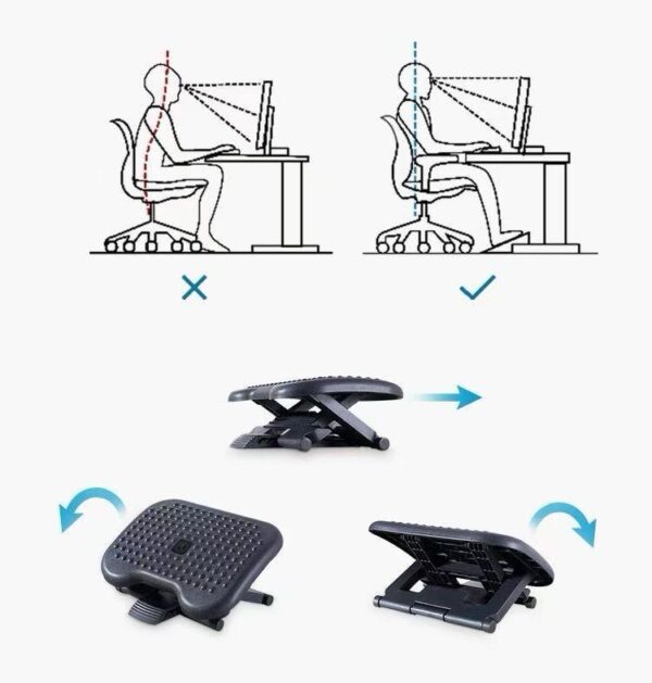 – Increase comfort at your desk. Keep legs and feet elevated for less strain and fatigue. Adjustable height and angle reduces pressure on the lower back and relieves discomfort when sitting.
