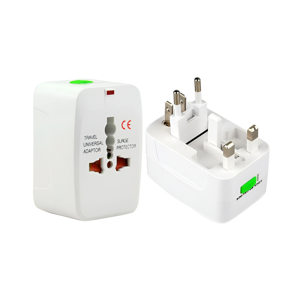 The Universal Travel Adapter is an all-in-one solution designed to keep your devices powered safely while traveling worldwide. Featuring a built-in surge protector, child protection safety shutter, and a convenient power indicator light, this adapter ensures reliable and secure charging in over 150 countries.