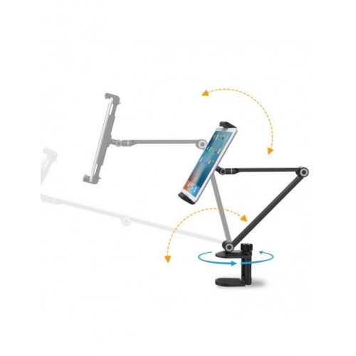 The UPERGO AP-7LC Mobile Stand is a versatile and ergonomic solution designed to hold smartphones and tablets ranging from 4″ to 13″ in size. Constructed from high-quality aluminum alloy, this stand offers durability and stability. The long arm design allows for adjustable height and angle, ensuring optimal viewing positions. Its sleek white finish complements modern desk setups, making it suitable for various applications such as video conferencing, reading, and entertainment.