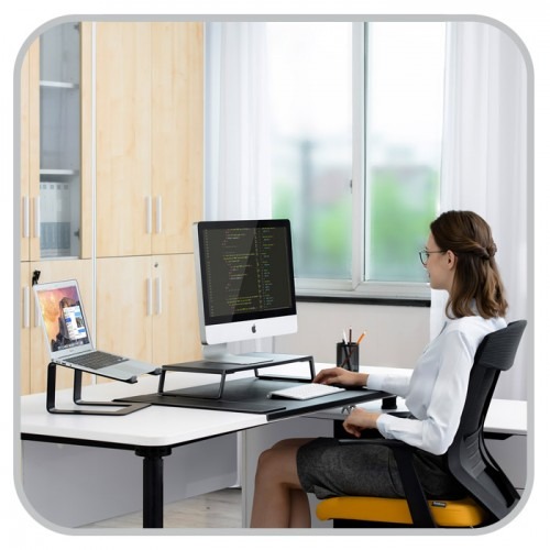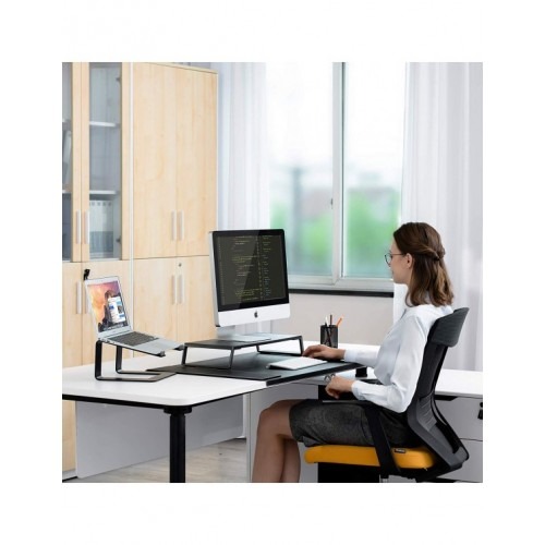 The UPERGO Laptop Stand – Dark Grey (AP-9) is crafted from durable aluminum alloy to provide a stable base for laptops ranging from 11″ to 17″. The stand elevates your laptop to an ergonomic viewing height, promoting better posture and reducing neck strain. Its open design allows for efficient heat dissipation, keeping your device cool during extended use. Anti-skid pads ensure your laptop stays securely in place on the stand.
